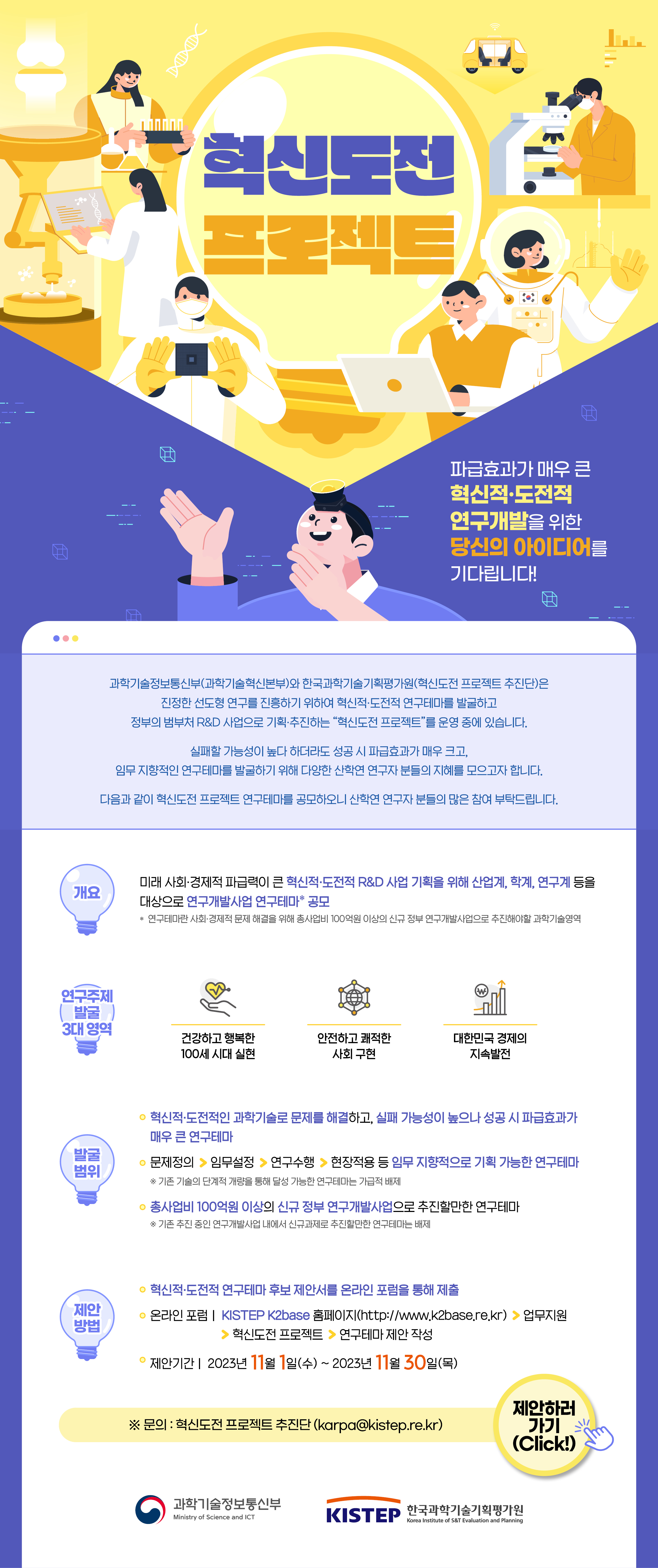파급효과가 매우 큰 혁신적·도전적 연구개발을 위한 당신의 아이디어를 기다립니다!