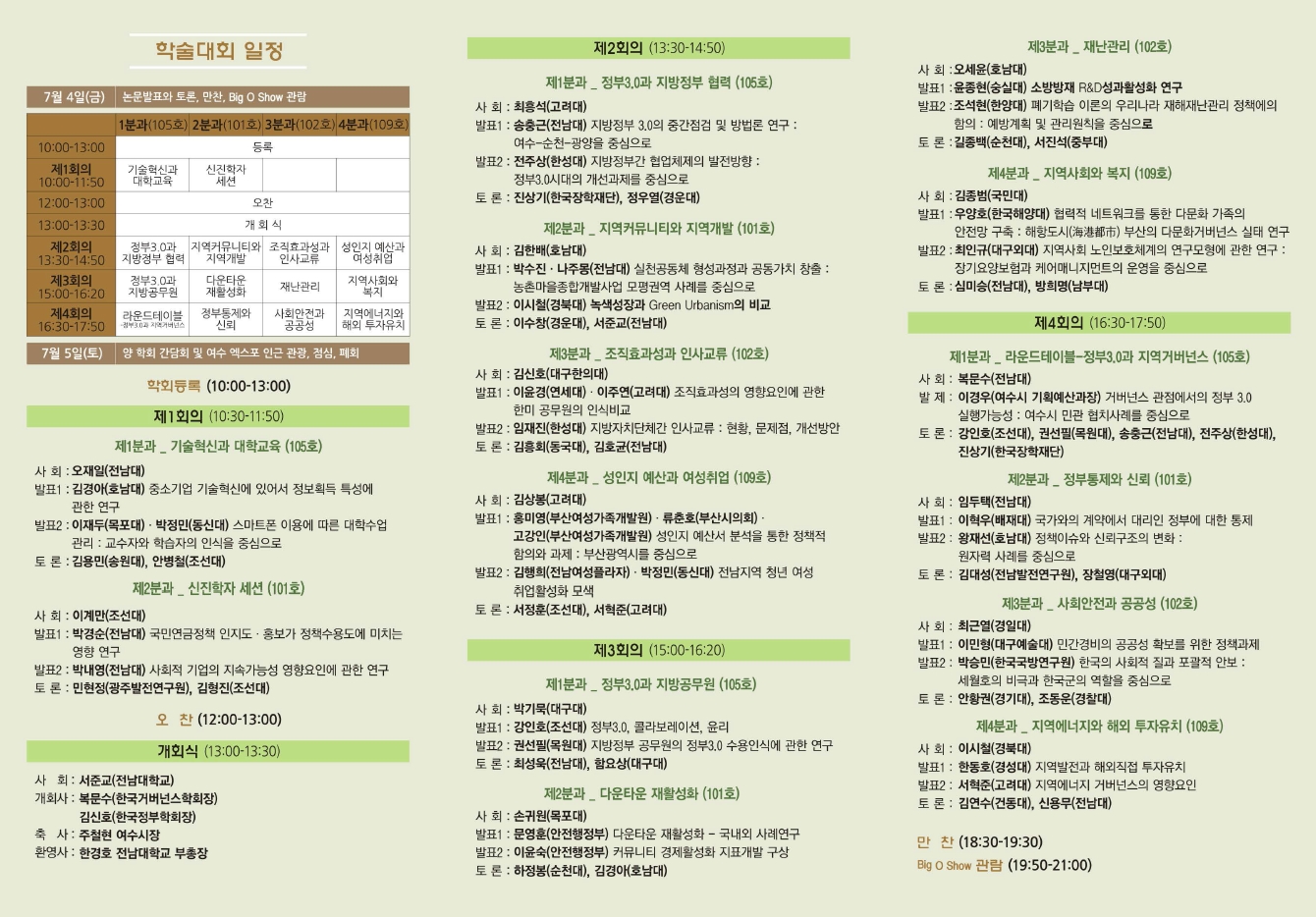 - 7월 5일 : 양 학회 간담회 및 여수 엑스포 인근 관광, 점심, 폐회
