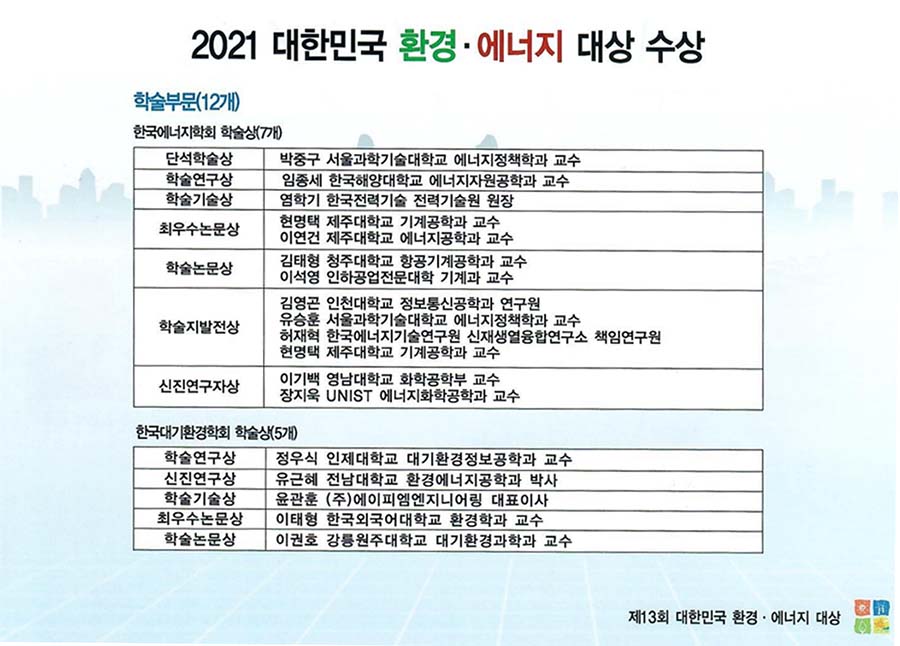 위와 같이 2021 대한민국 환경·에너지대상 시상식을 개최하였습니다.