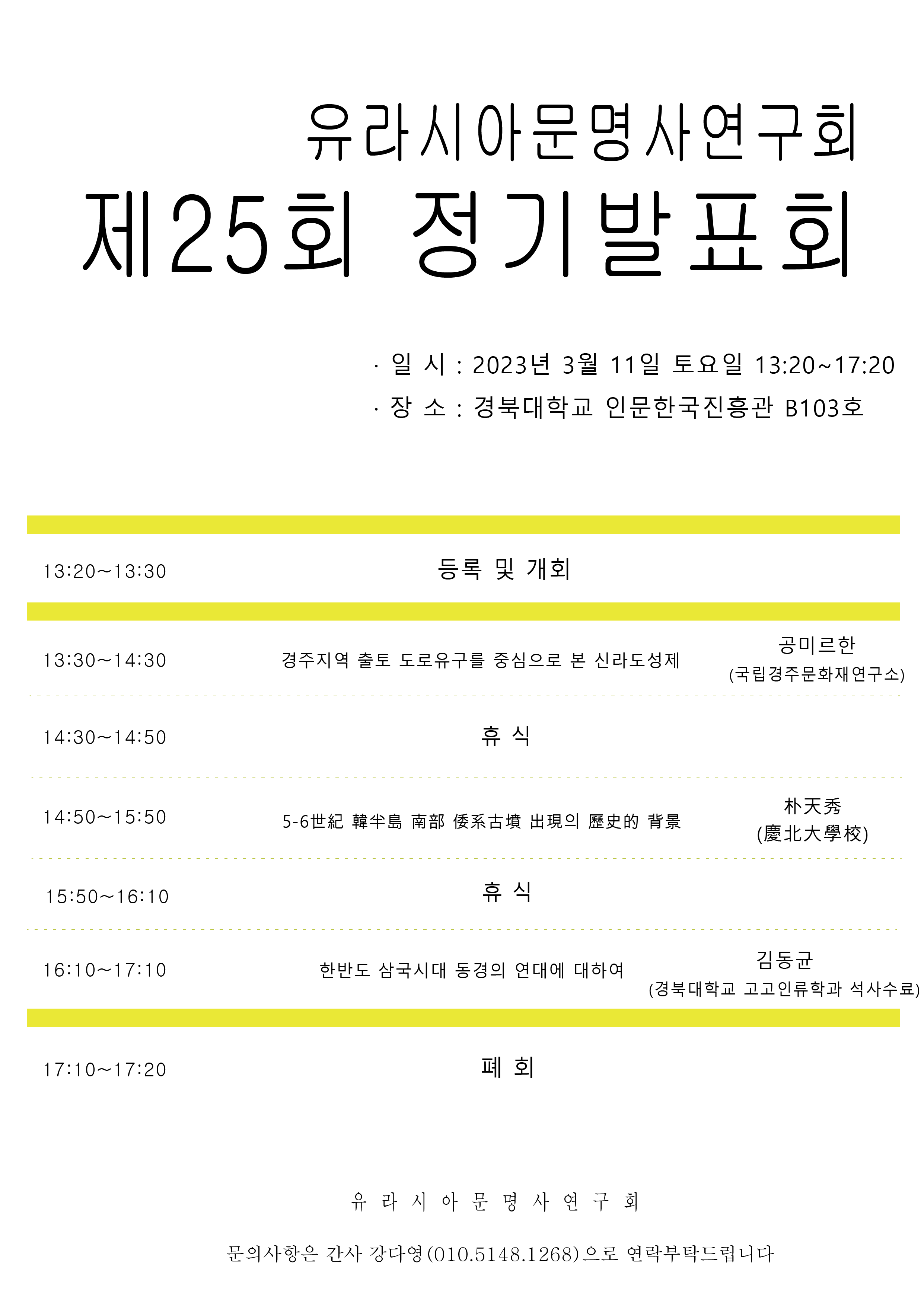 2023년 3월 11일 토요일, 유라시아문명사연구회 제25회 정기발표회가 진행될 예정입니다.