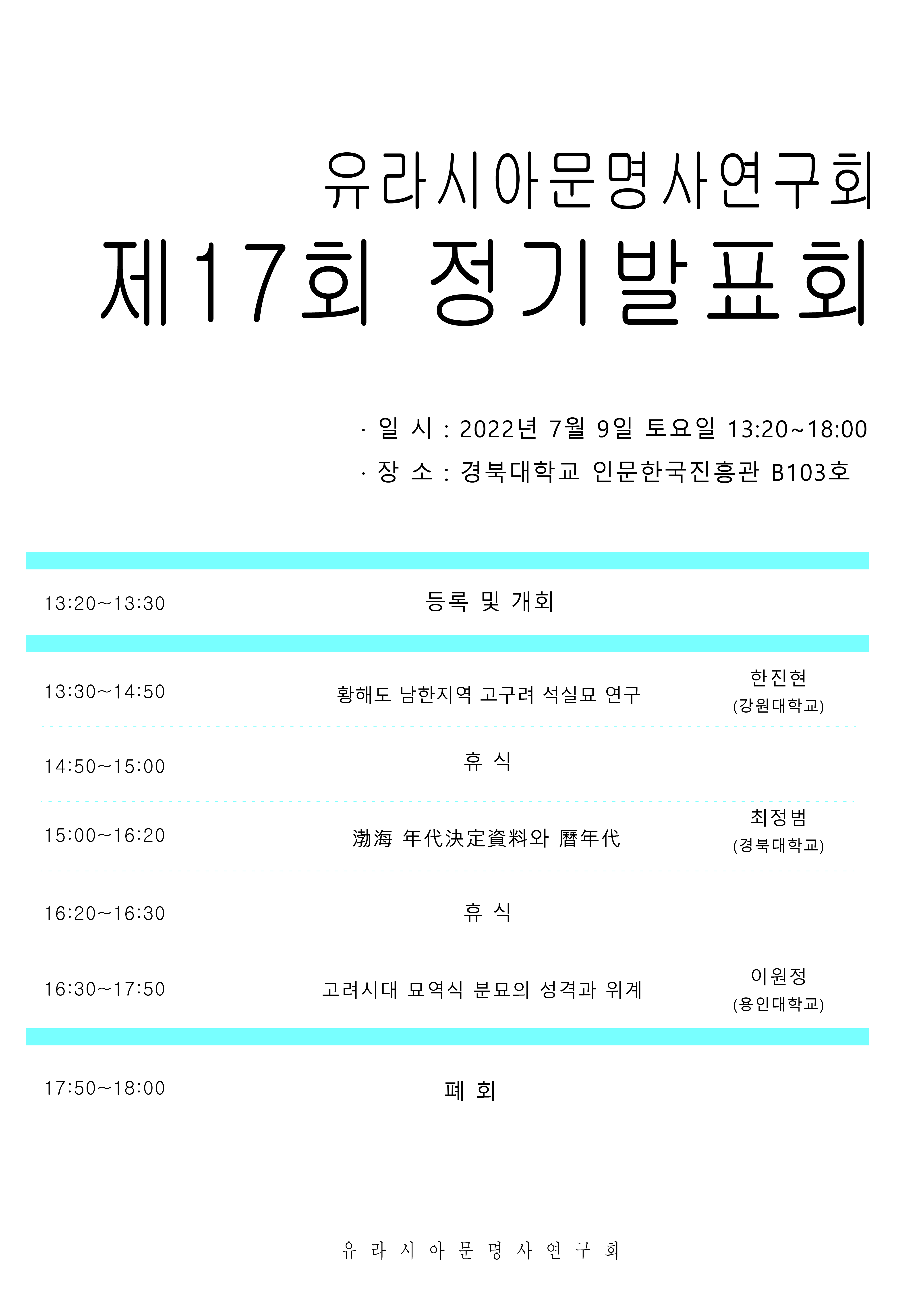 2022년 7월 9일 토요일, 〈유라시아문명사연구회 제17회 정기발표회〉를 개최하고자 합니다.