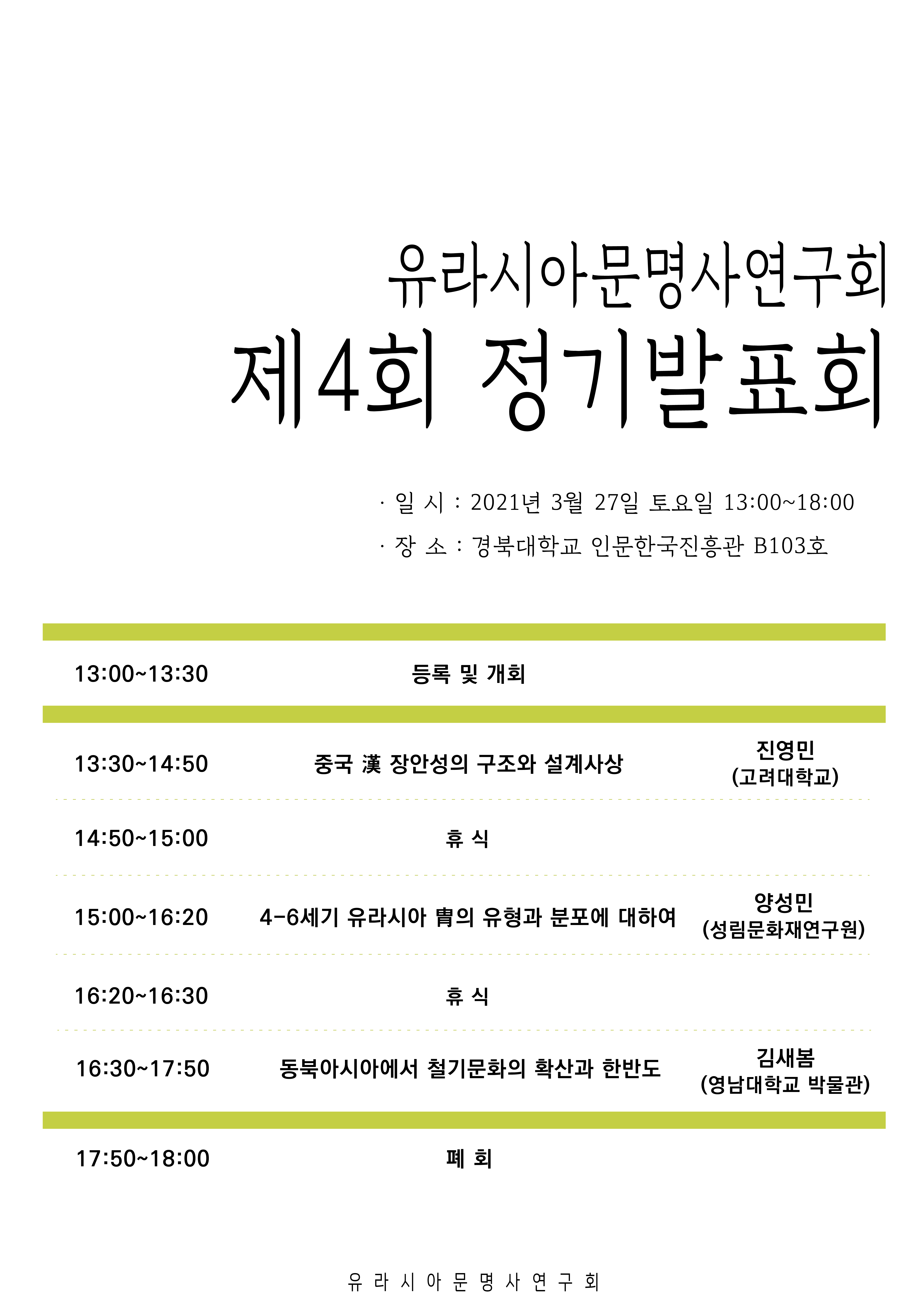 유라시아문명사연구회 제4회 정기발표회를 개최하고자 합니다.