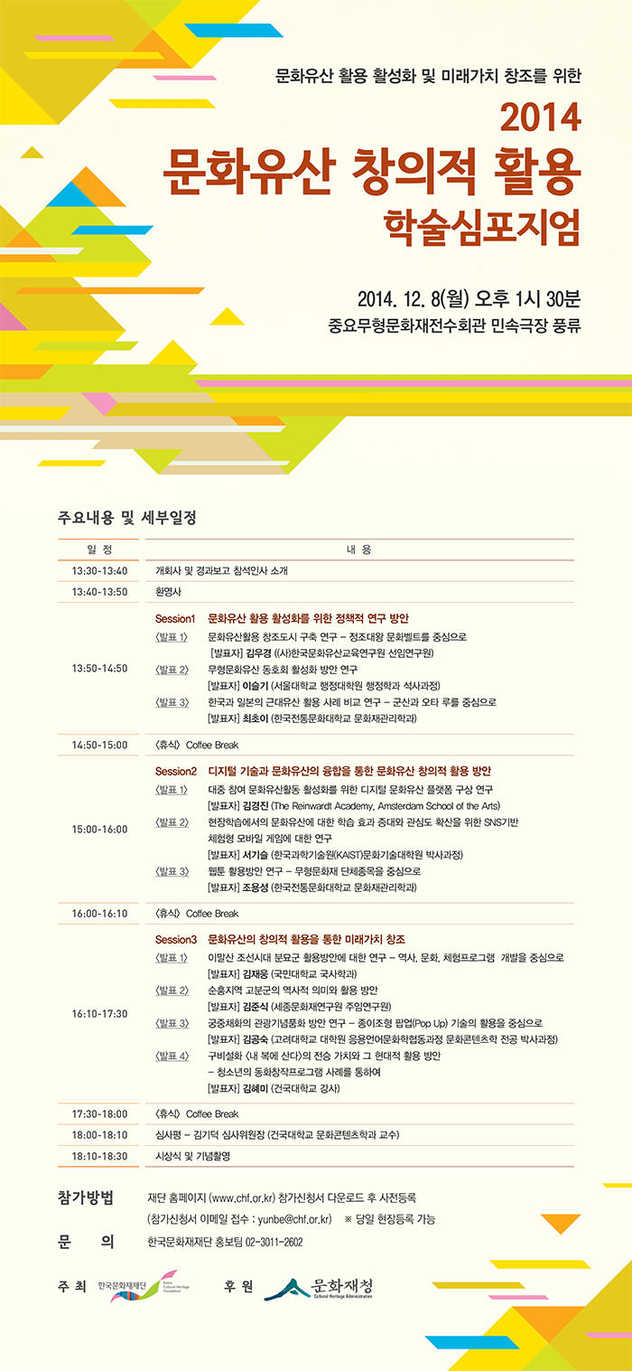 [한국문화재재단] 2014 문화유산 창의적 활용 학술심포지엄 개최 안내