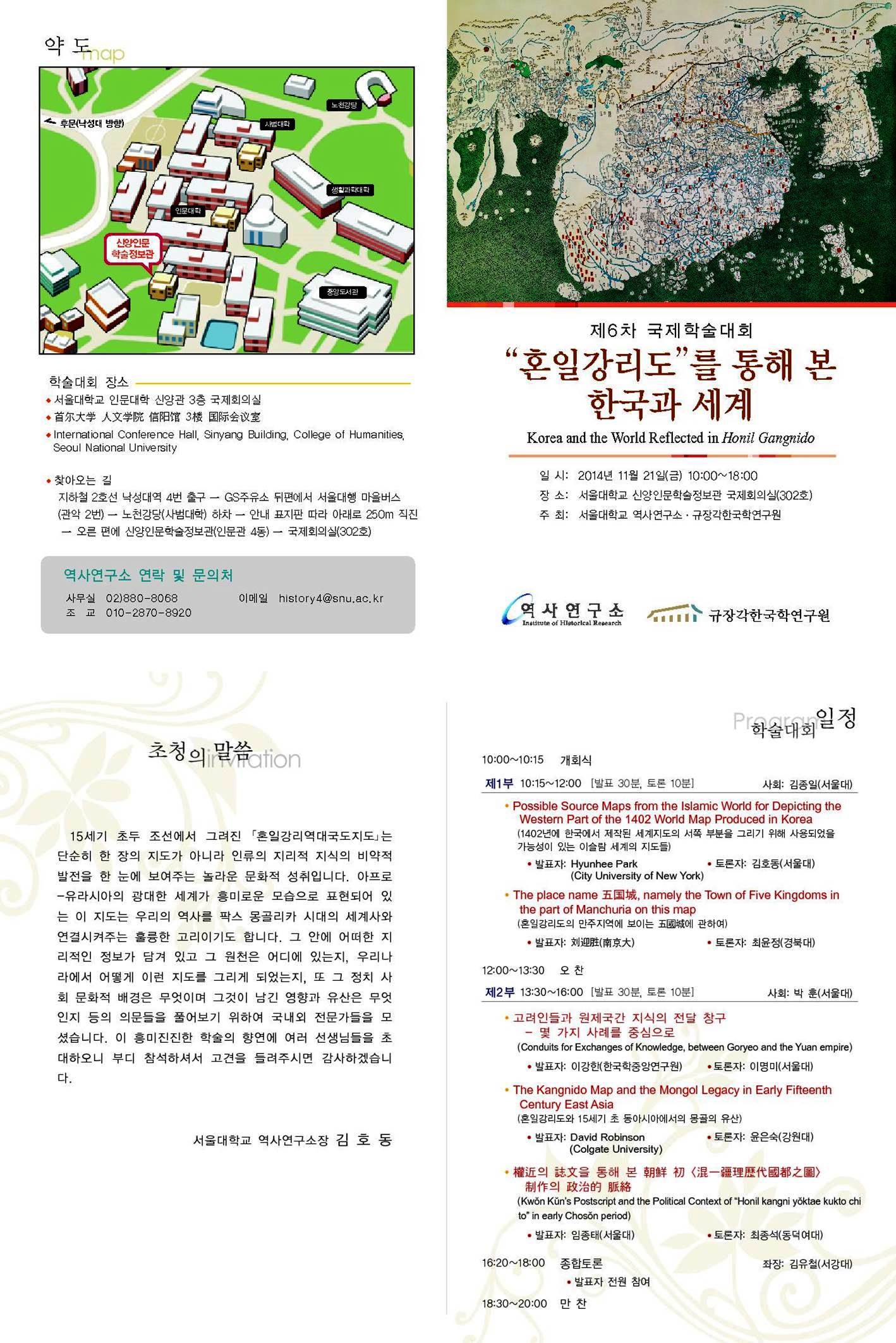서울대역사연구소 주최 제6회 국제학술대회 <'혼일강리도'를 통해 본 한국과 세계> 안내