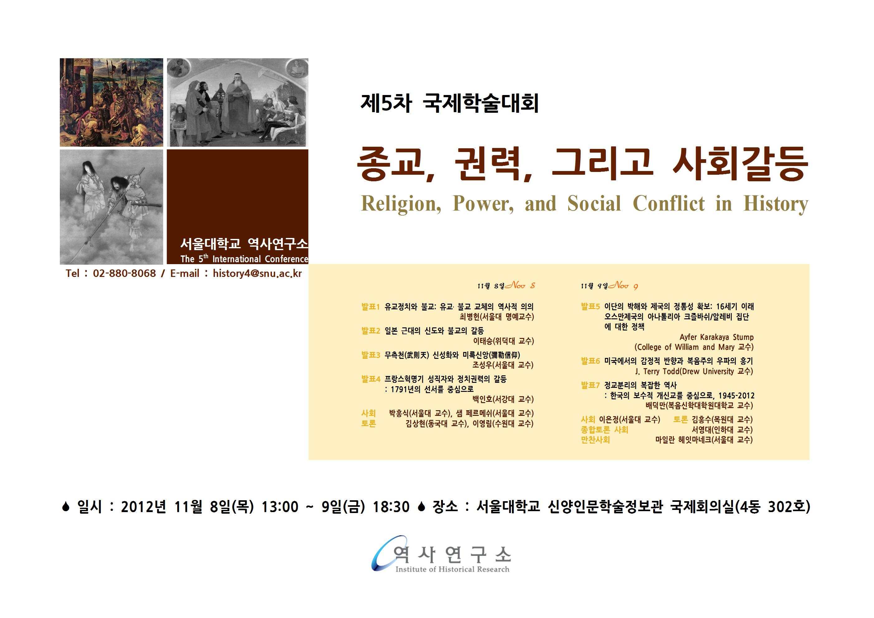 제5차 서울대학교 역사연구소 국제학술대회: 종교, 권력, 그리고 사회갈등