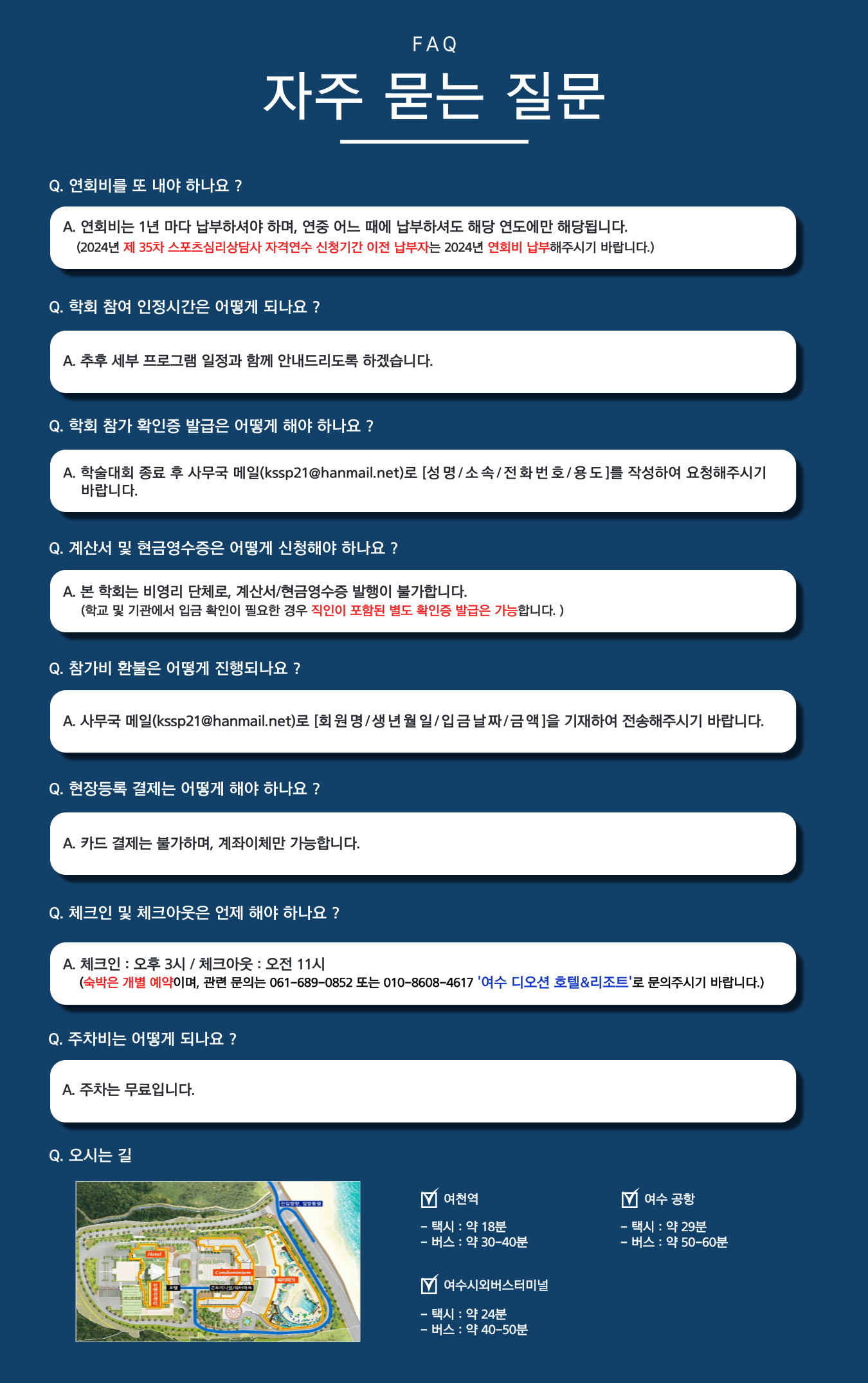 숙박 예약신청은 신청서(첨부5) 작성하여, 여수 디오션 리조트 메일로 별도 접수6890852@naver.com )