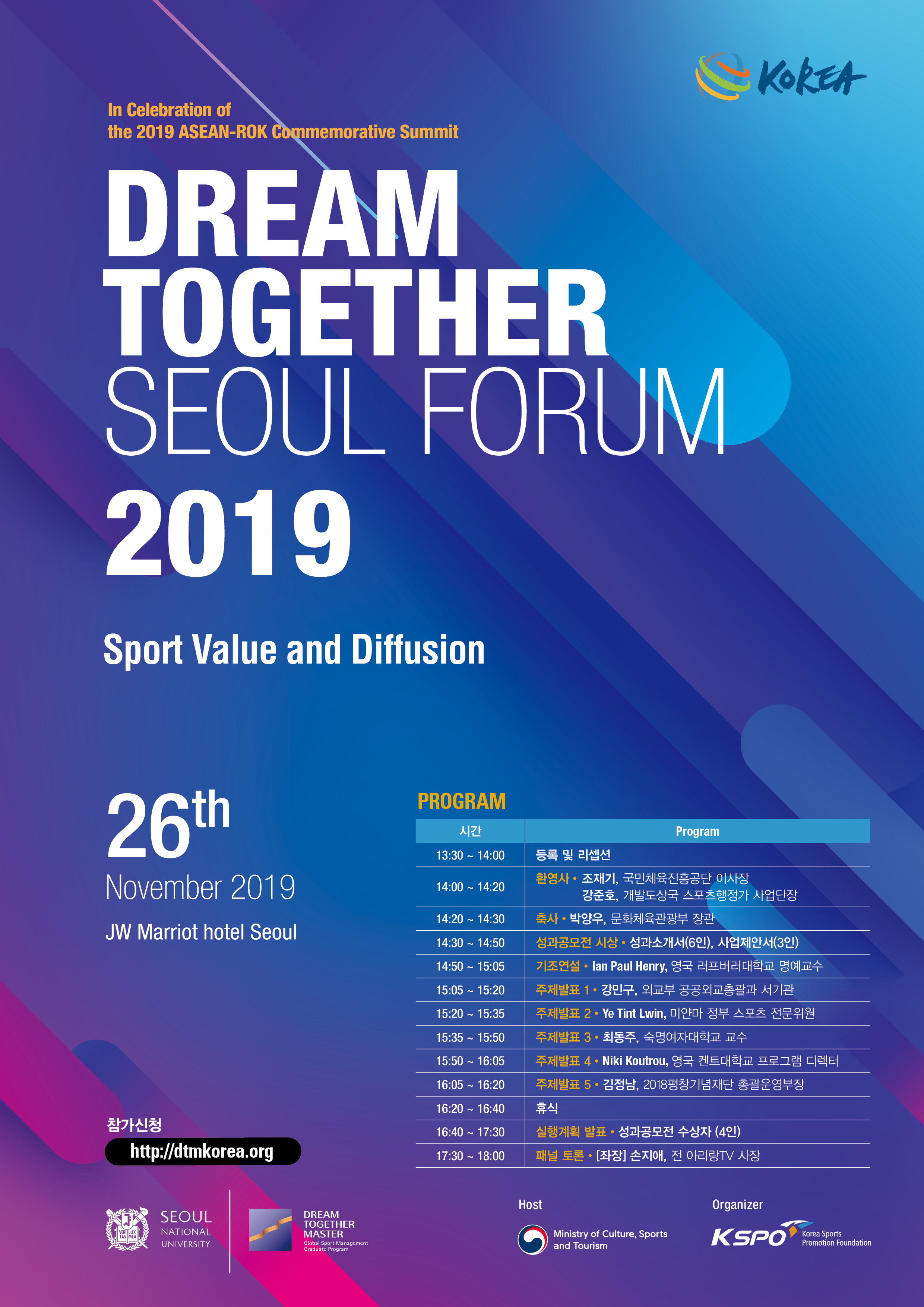 '2019 드림 투게더 서울 포럼' 이 11월 26일 (화) 개최 됩니다.