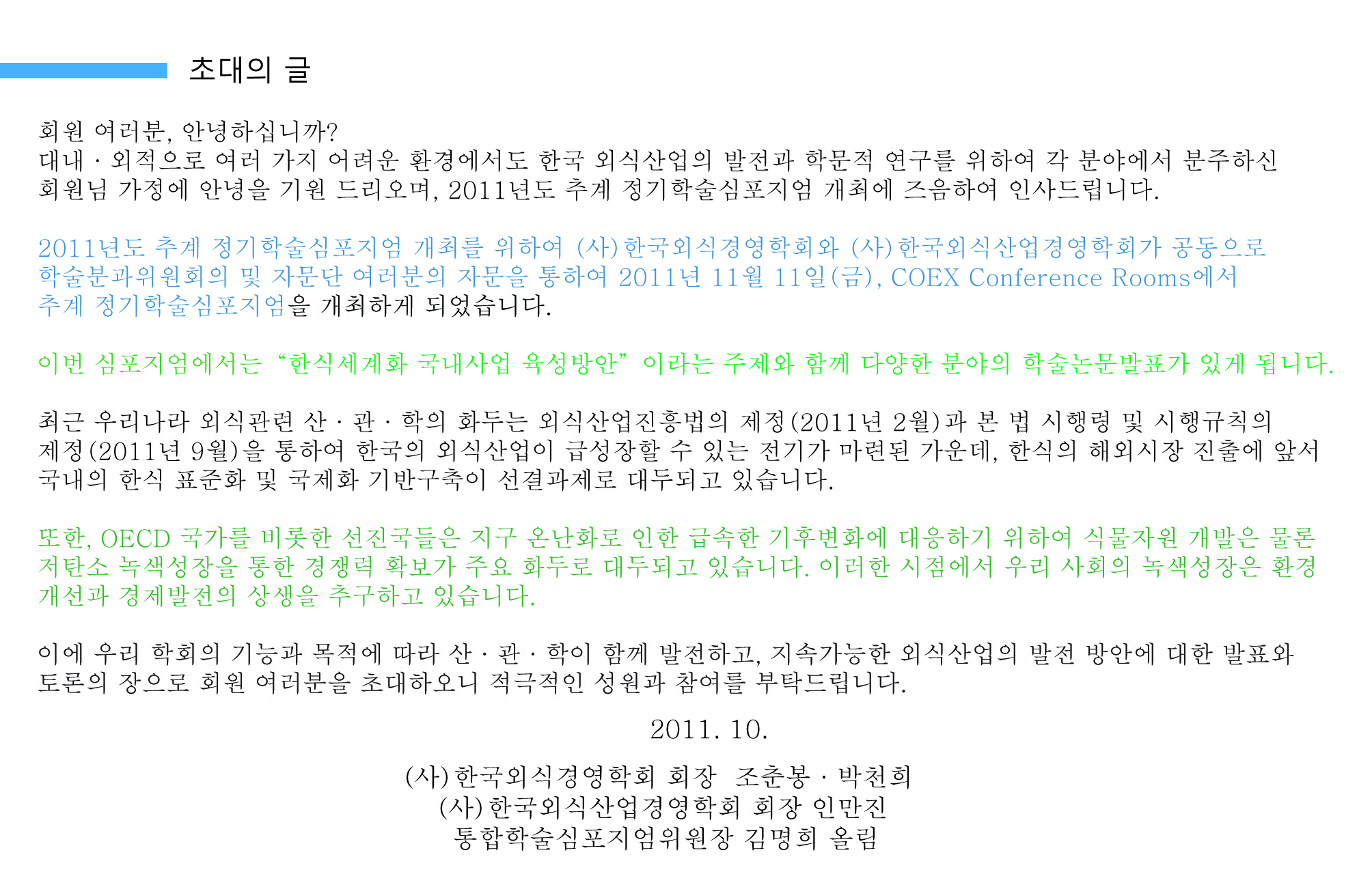 추계학술대회 초대장
