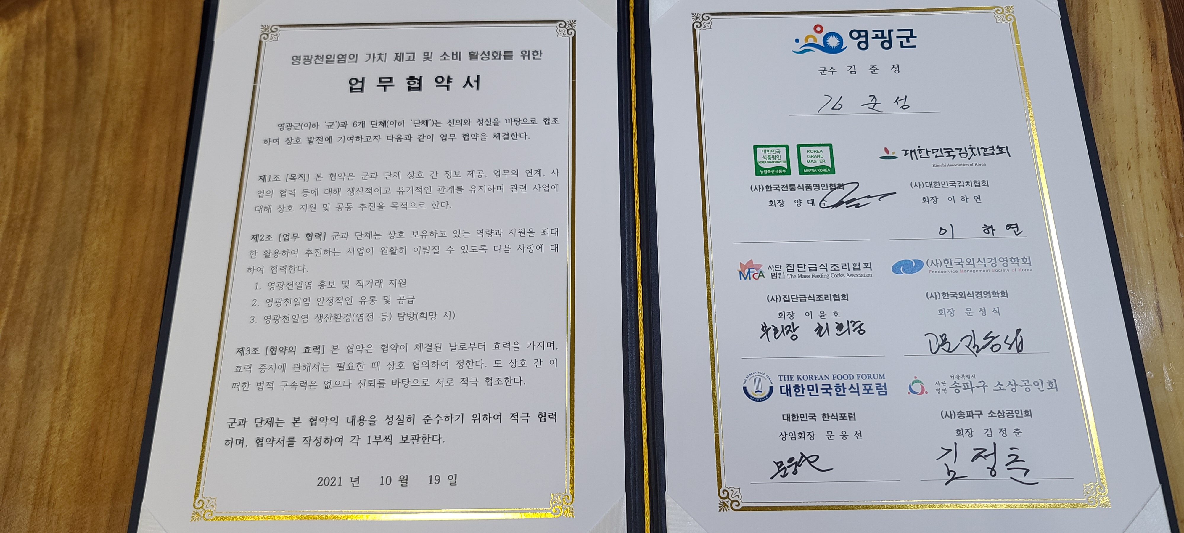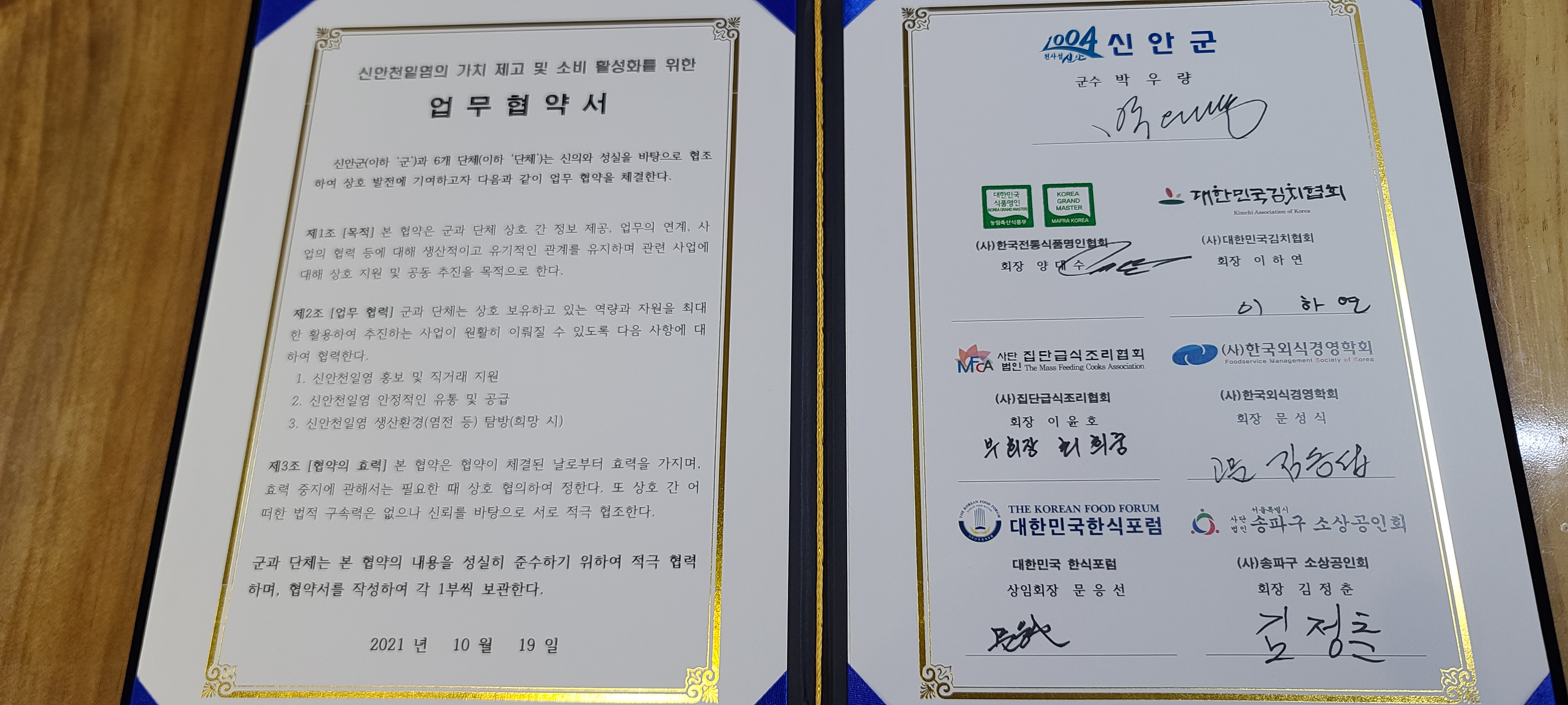 천일염가치 제고 및 소비 활성화를 위한 업무협약서 체결