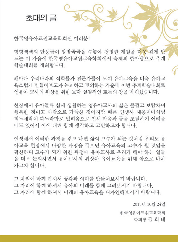 2015년 추계학술대회에 여러분을 초대합니다.