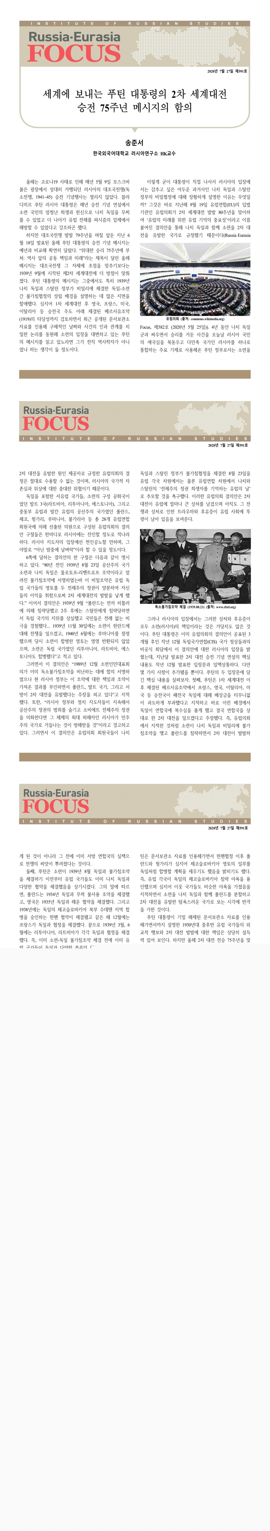 제591호 세계에 보내는 푸틴 대통령의 2차 세계대전 승전 75주년 메시지의 함의