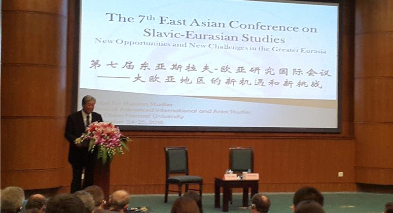 송준서 교수와 이지연 교수는 지난  2016 년  9 월  24-25  양일간 중국 상하이 화동 사범대학에서열린  제  7 회  동아시아 슬라브 - 유라시아 학술대회에 참가하였다 송준서 교수는  Searching for Meta-narratives: Analyses of Changes, Challenges, and Opportunities in Eurasian Space 라는 표제하에 한중일  3 국의 근간의 대표적인 출판 성과를 소개하는 패널의 좌장이자 발표자로 나서 러시아 프스코프 주의 역사와 현재의 지경학적 의미를 고찰하는 자신의 서적을 소개하였다 이지연 교수는 Impact and Perspective of Russian Literature in the Context of Eastern Asia: China, Korean, and Japan 이라는 제목으로 구성된 한중일 공동 세션에서  한국 근대 자유시 형식의 발전에 있어서의 투르게네프 산문시의 영향 ( The Influence of Turgenev's prosaic poem on the formation of Korean free verse) 이라는 제목의 논문을 발표하였다 아울러 이지연 교수는  26 일 월요일 상하이 사범대학에서 현대 러시아 문학의 흐름을 주제로 펼쳐진 한중일  3 개국 학자들의 기획 강연에 참가하여 현대 러시아 시인 브로드스키와 망명문학에 관해 대학원생들과 연구자들에게 강의하였다 .