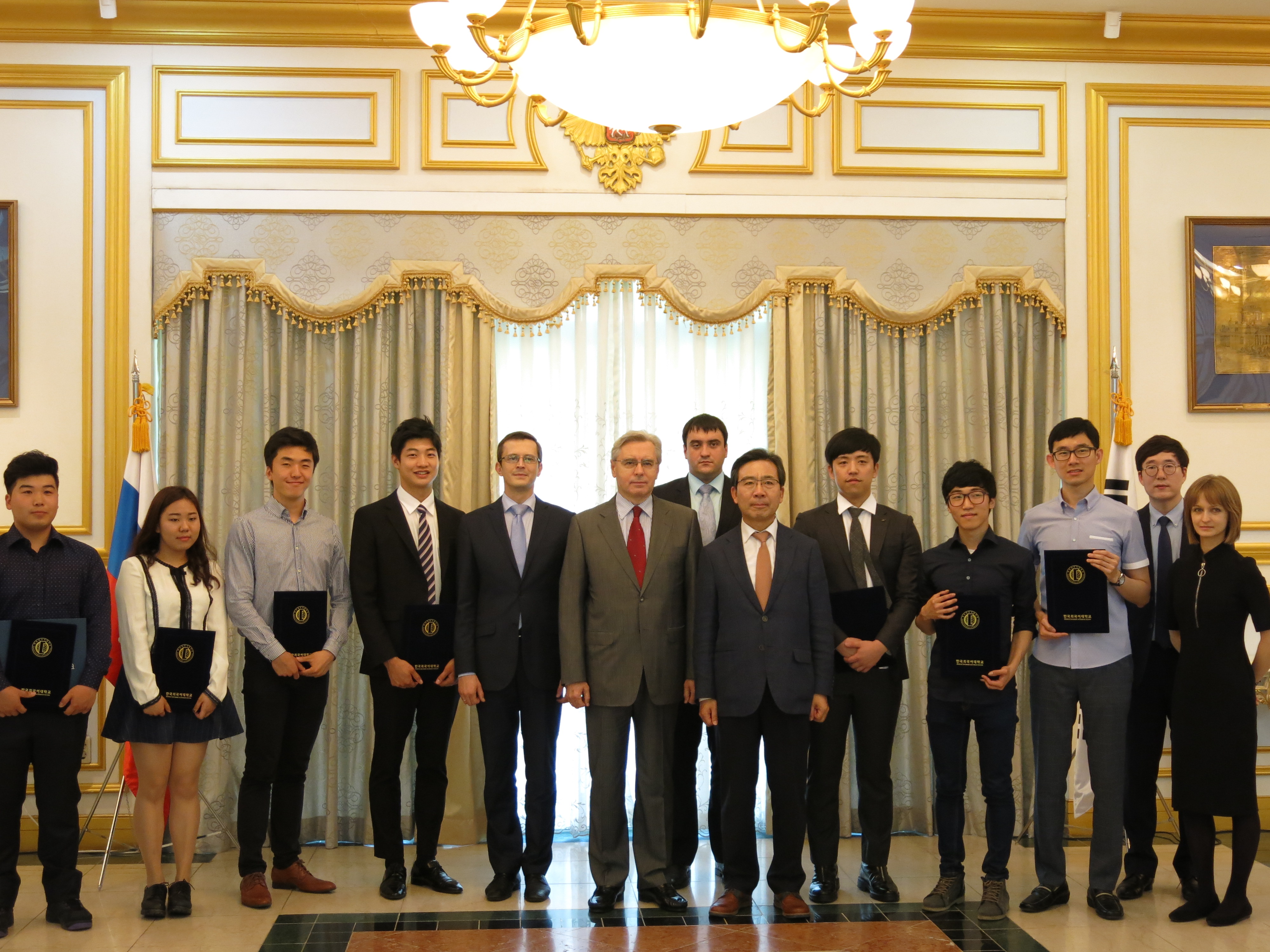 알렉산드르 티모닌 대사가 학생들에게 상장과 기념품을 수여했으며 이후 대사관 측에서 마련한 다과를 모두 함께하며 화기애애한 분위기 속에서 간담회가 진행되었다 .