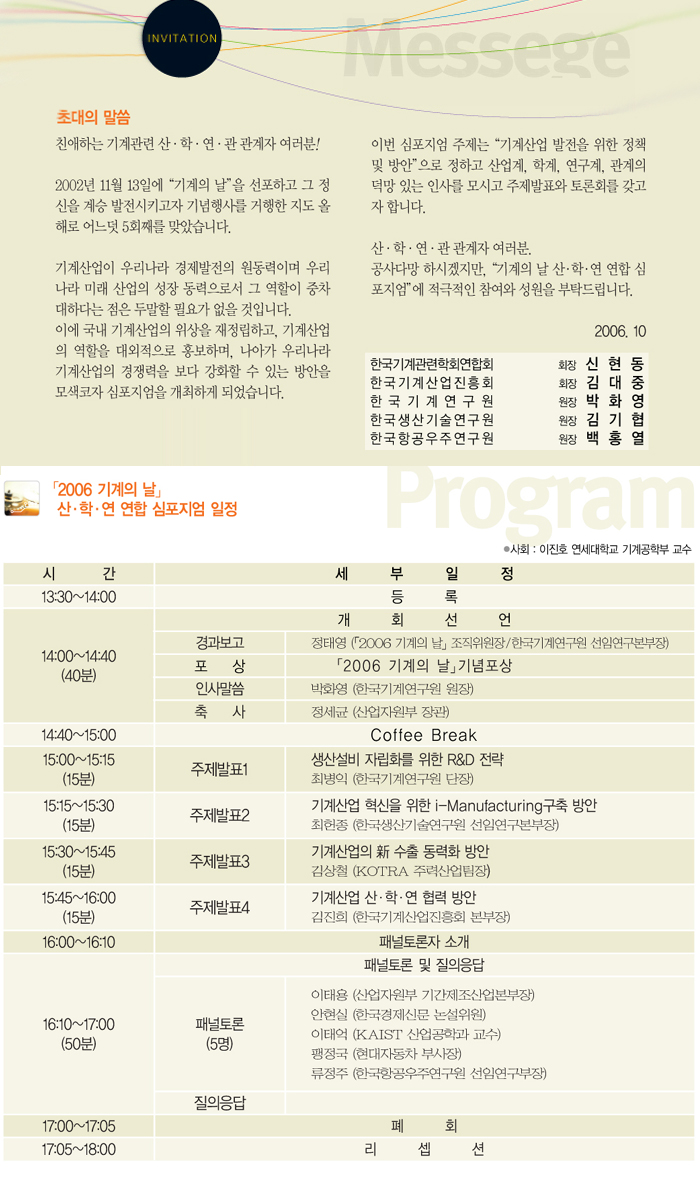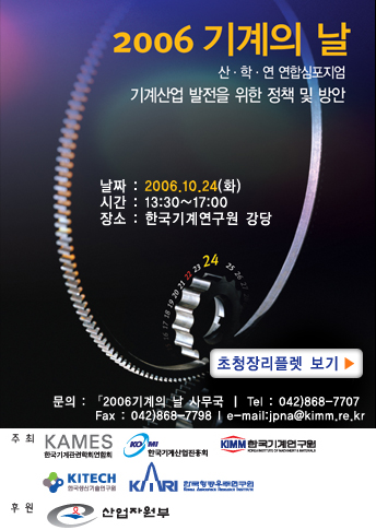 「2006 기계의 날」기념 행사가 아래와 같이 개최됩니다.
