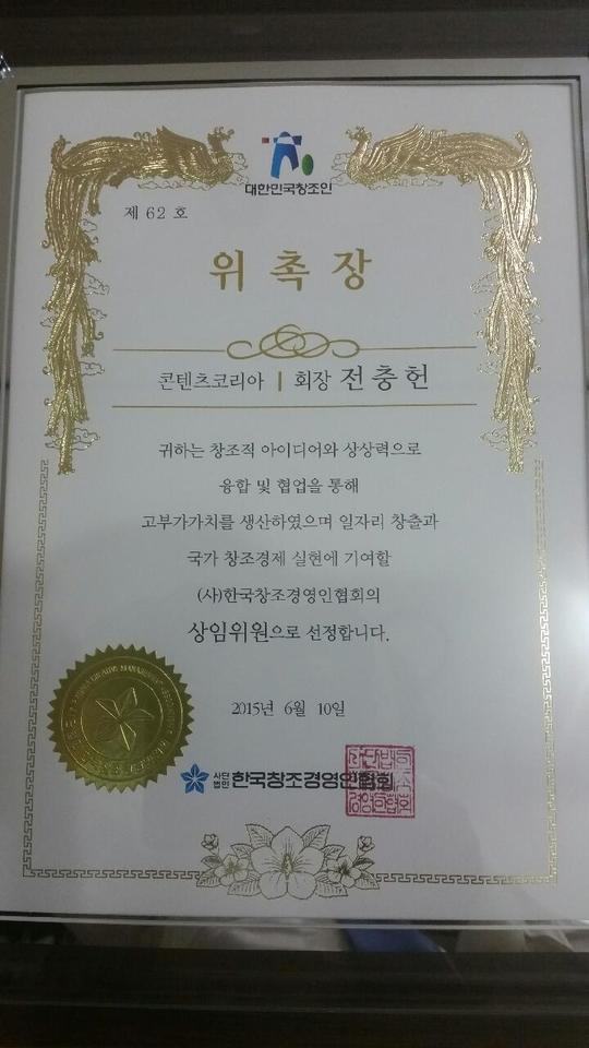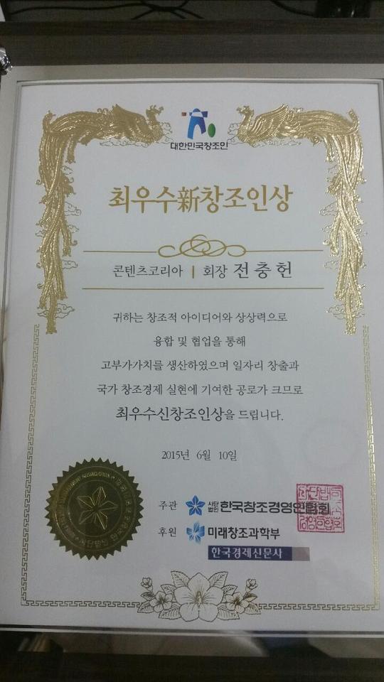 2015년 6월 10일에 '최우수신창조인상'을 한국창조경영연합회로 부터