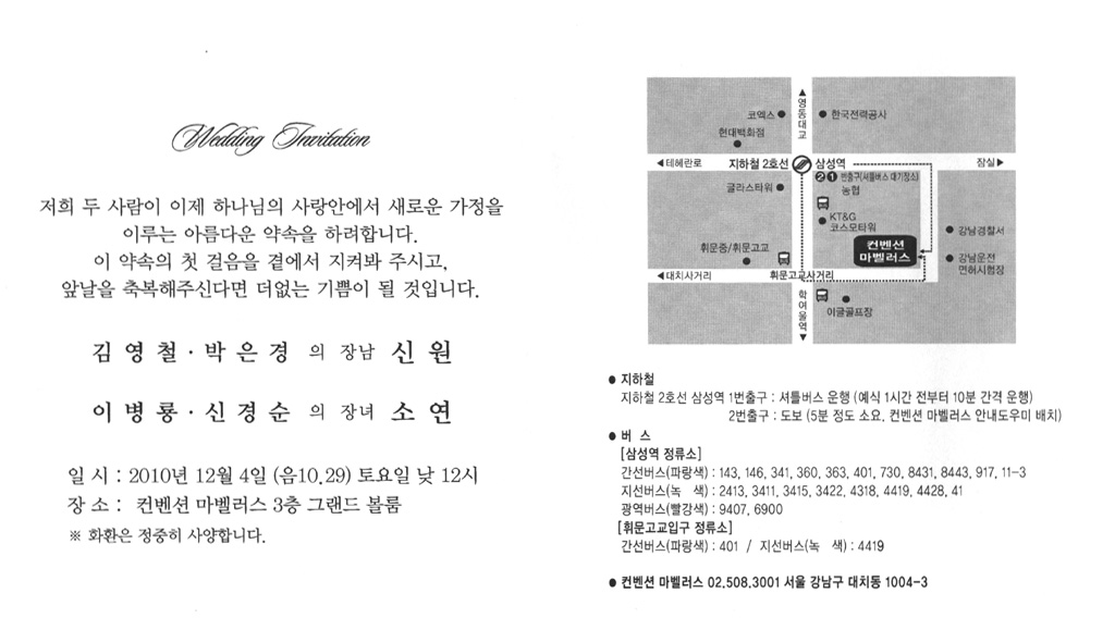 2010년 12월 4일(토) 낮 12시 컨벤션 마벨러스 3층 그랜드볼룸에서 열릴 예정입니다.