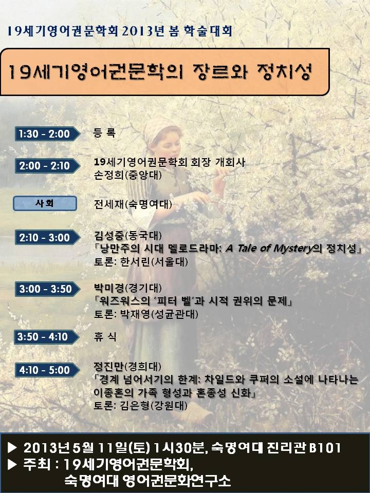 선생님, 19세기영어권문학회 봄학술대회가 다음주 토요일(5/11)로 다가왔습니다.