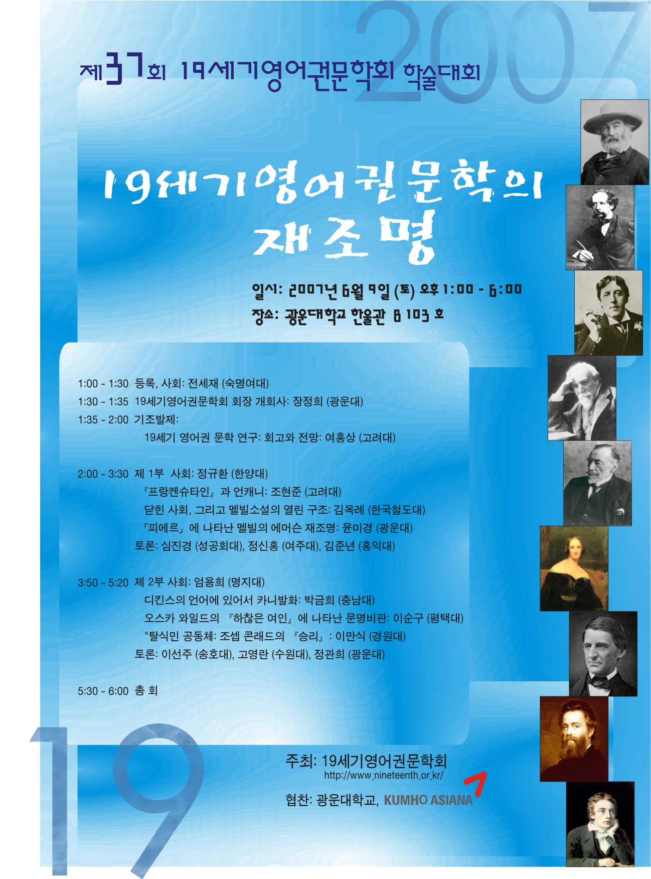 2007년 6월 9일 광운대에서 개최될 제37회 19세기영어권문학회 포스터