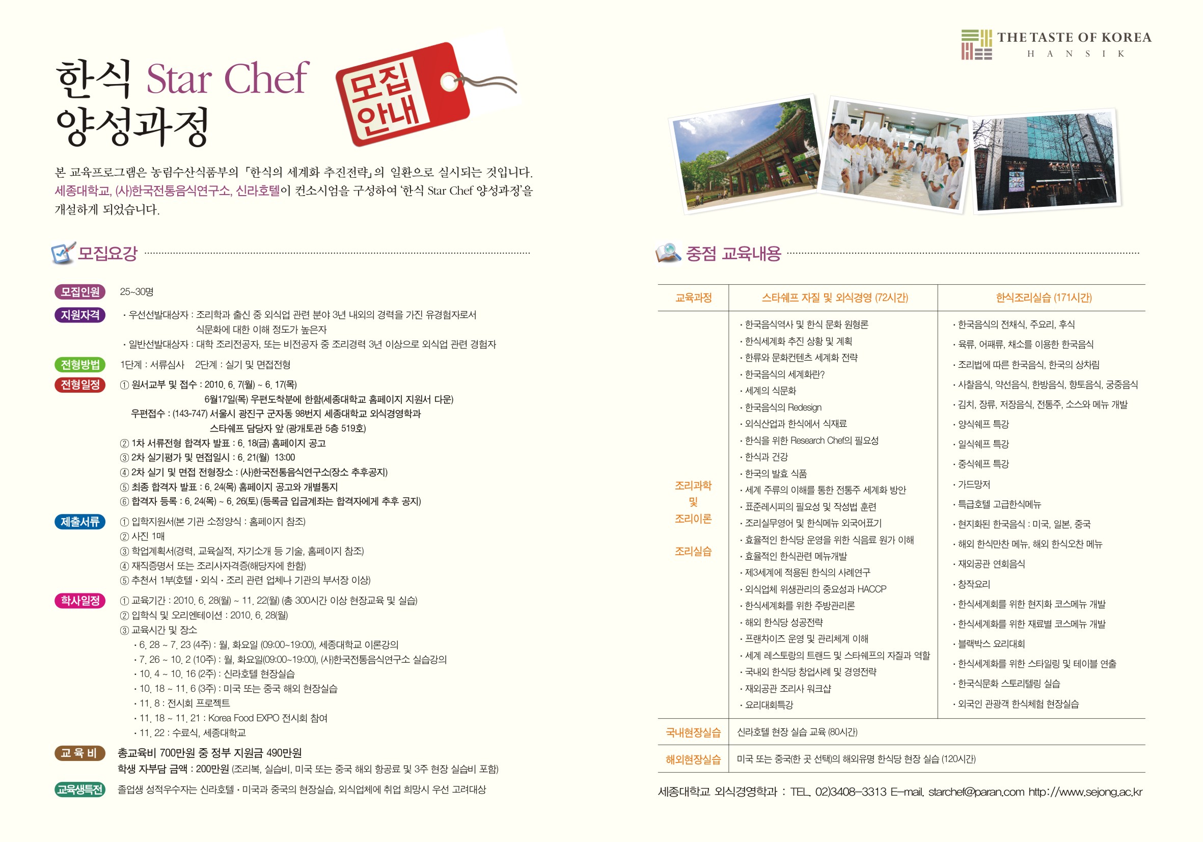 세종대학교 2010 한식 Star Chef 양성과정 모집안내 (농림수산식품부 「한식의 세계화 추진전략」)