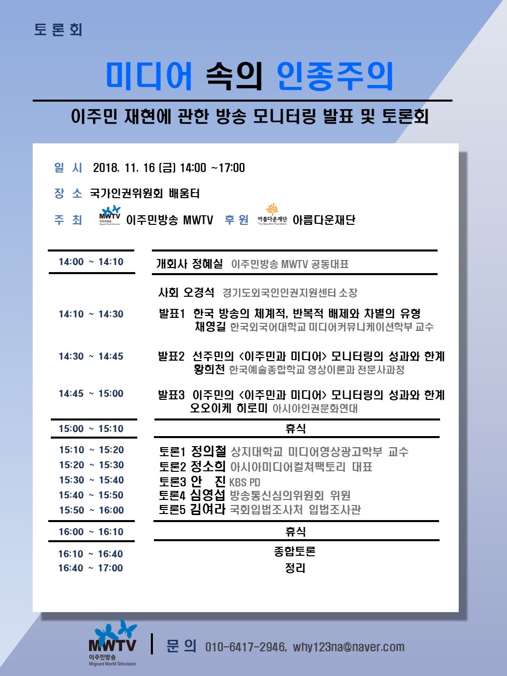 1) 행사명: 이주민방송 MWTV ‘미디어 속의 인종주의’ 토론회