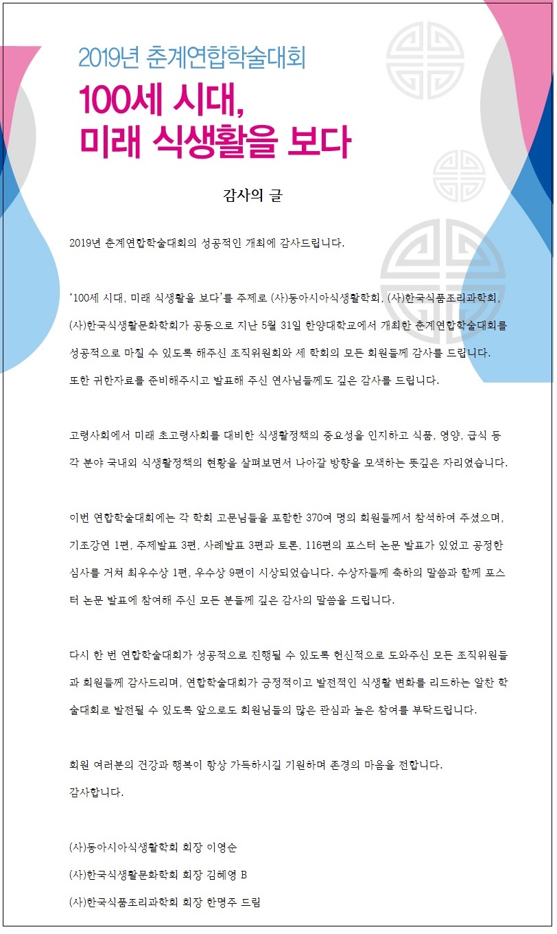 2019년 춘계연합학술대회의 성공적인 개최에 감사드립니다.