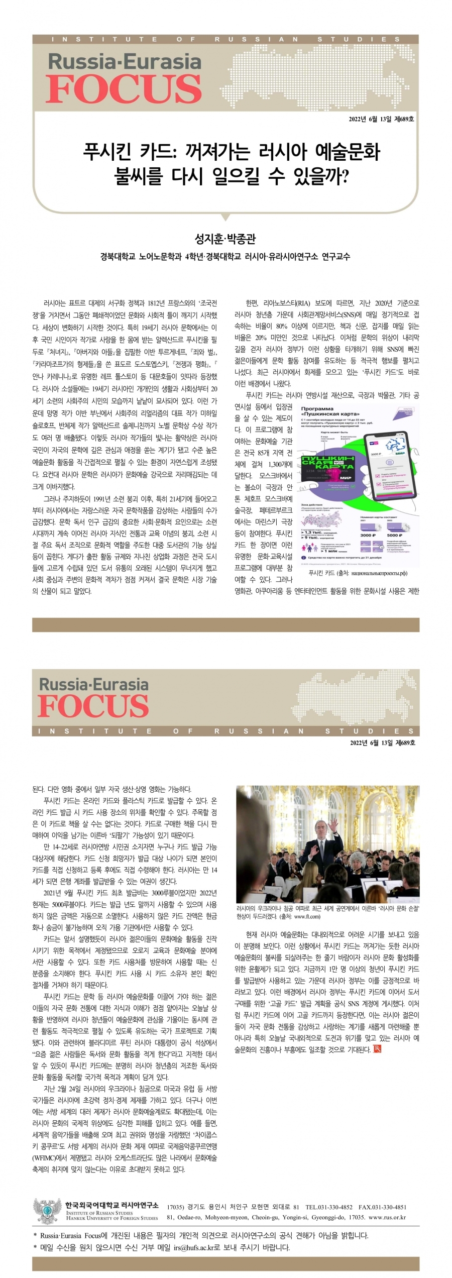 제689호 푸시킨 카드: 꺼져가는 러시아 예술문화 불씨를 다시 일으킬 수 있을까?