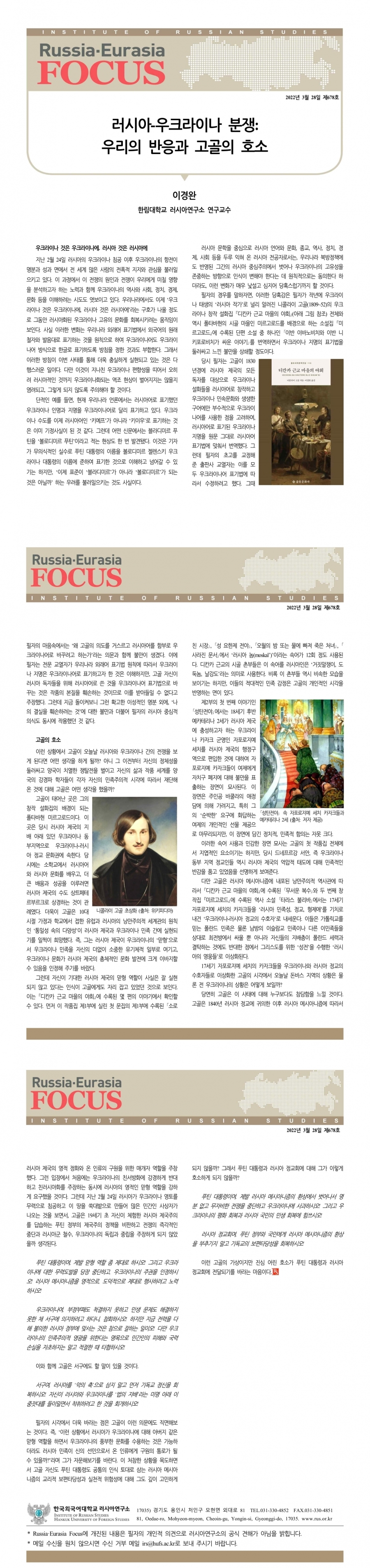 제678호 러시아-우크라이나 분쟁: 우리의 반응과 고골의 호소
