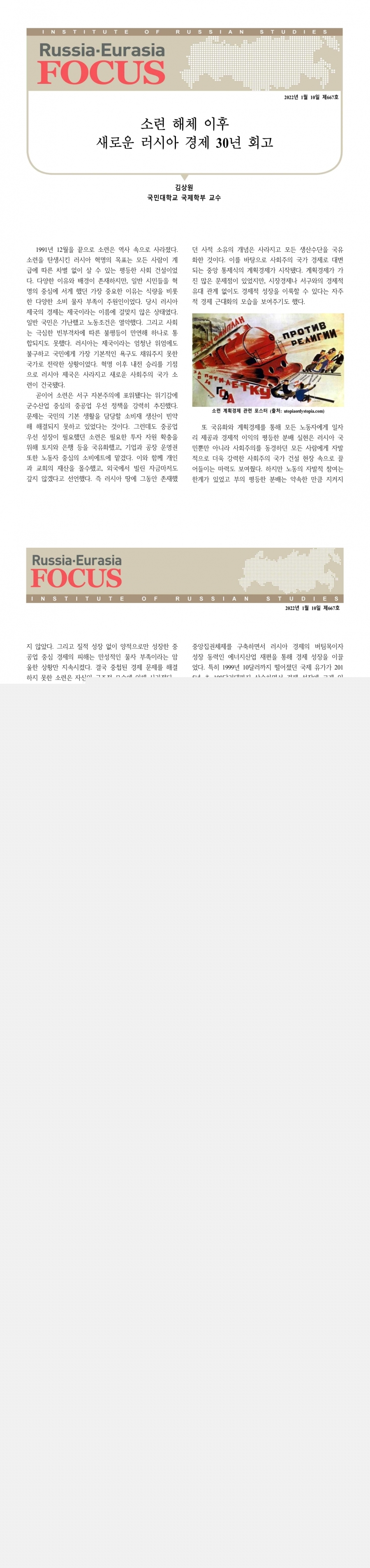 제667호 소련 해체 이후 새로운 러시아 경제 30년 회고