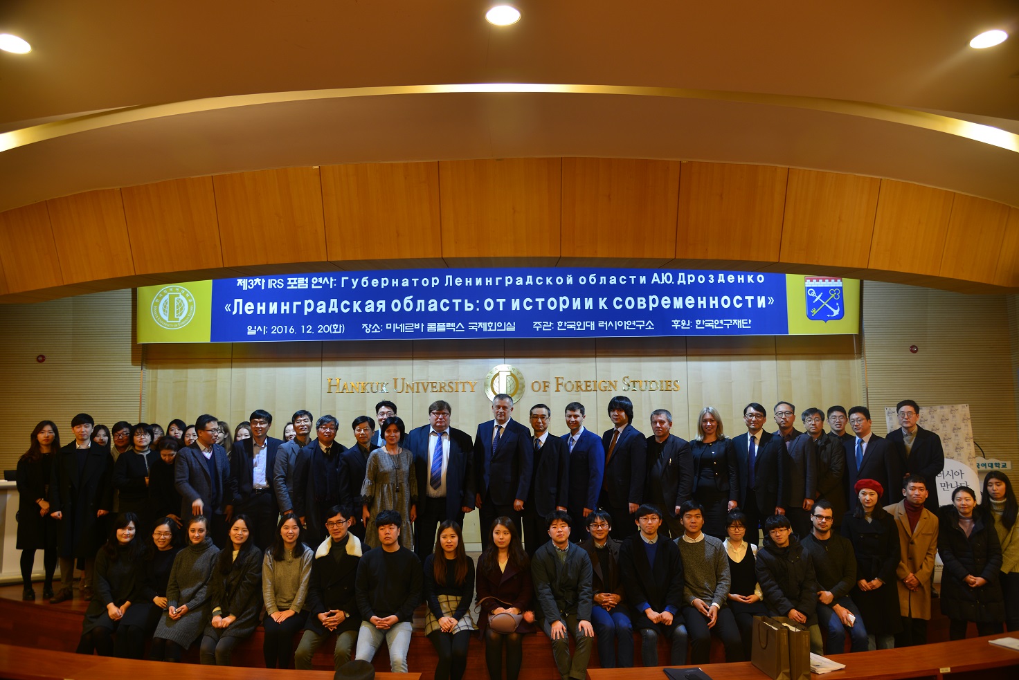 러시아연구소는  2016 년  12 월  20 ( 이문동 캠퍼스에서 제 3 차  IRS FORUM 을 개최했다 이번 포럼에서는 알렉산드르 드로젠코 러시아 레닌그라드 주지사가  레닌그라드 주의 역사와 현대성 이라는 주제로 발표했다 알렉산드르 드로젠코는 고대 도시 스타라야 라도가 ( Старая Ладога ) 부터 갓치나 ( Гатчина ),  비보르크 ( Выборг ) 까지 레닌그라드 주의 역사적인 지역뿐만 아니라 오늘날 새로운 경제적 거점도시를 소개하며 이 지역의 역사와 역동적으로 변모하는 모습을 설명했다 이번 포럼에는 방학을 맞이했음에도 많은 학생들이 참석했으며 학생들의 다양한 질문으로 레닌그라드 주의 정치 경제적 측면을 더욱 심층적으로 알아볼 수 있었다 .