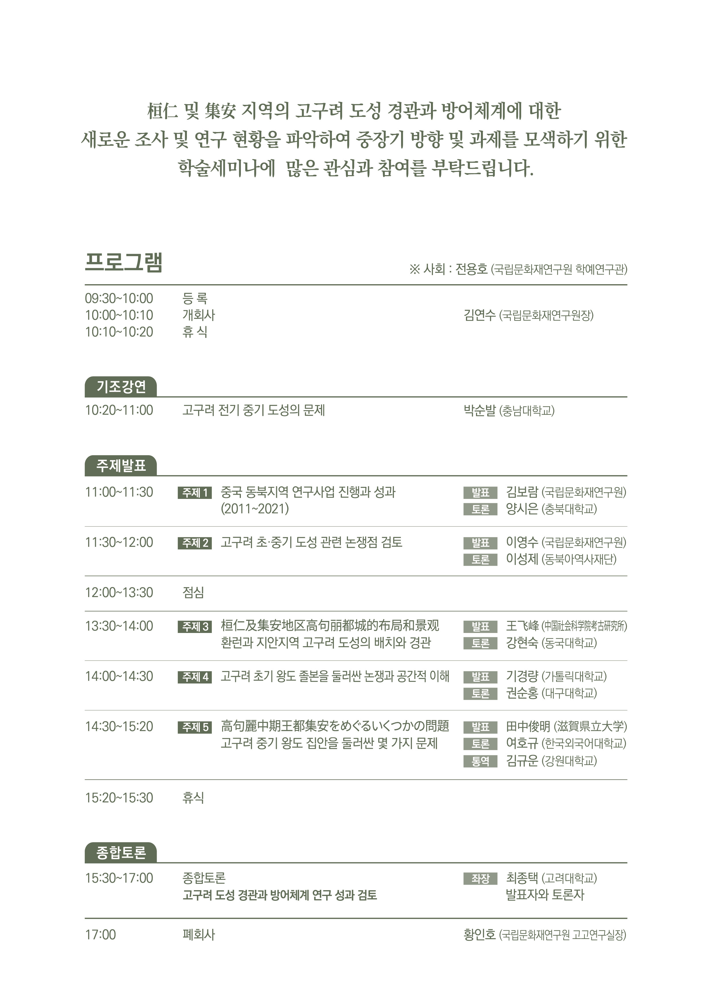국립문화재연구원 고고연구실에서 『고구려 도성 경관과 방어체계의 새로운 인식』 국제학술세미나를 개최합니다.