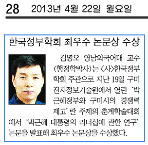 3. 우수논문상 수상(영남일보 2013년 4월22일 28면)