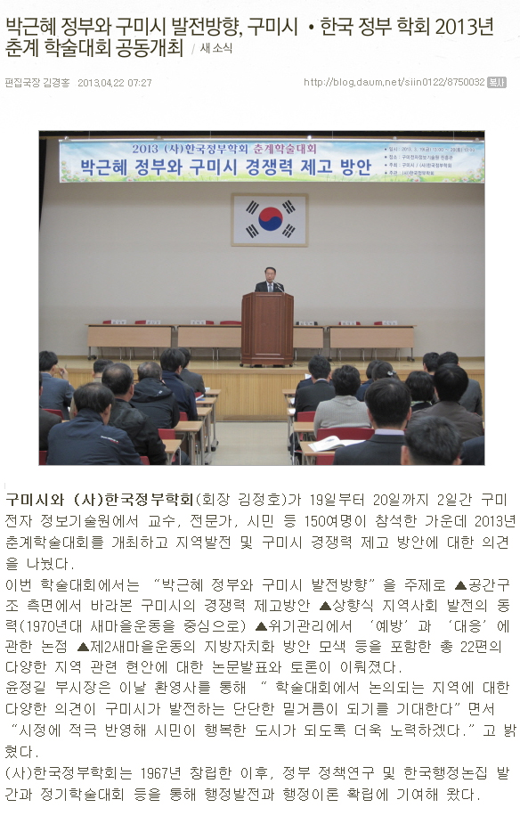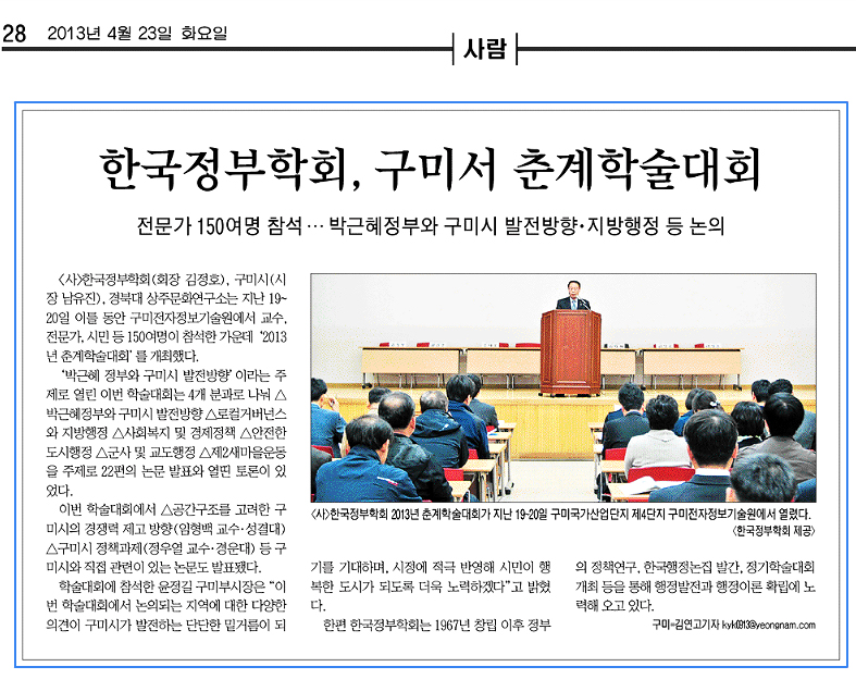 2. 2013 춘계학술대회(4/19-4/20) 행사관련 영남일보 2013년 4월23일 28면