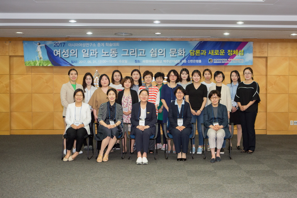 * 주 제 : 여성의 일과 노동 그리고 쉼의 문화: 담론과 새로운 정체성 * 주 최 : 아시아여성연구소 * 일 시 : 2017년 5월 31일(수) 13:00~18:00 * 장 소 : 숙명여자대학교 백주년기념관 6층 신한은행홀 |