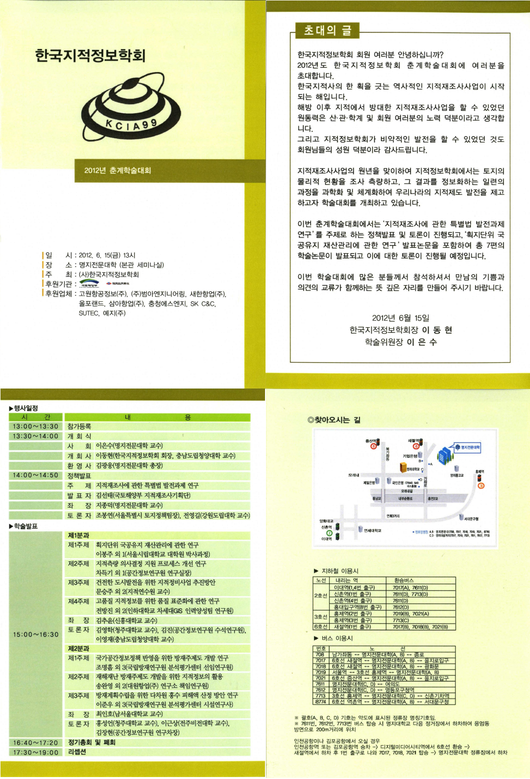 2012년 한국지적정보학회 춘계학술세미나를 6월 15일 (금)