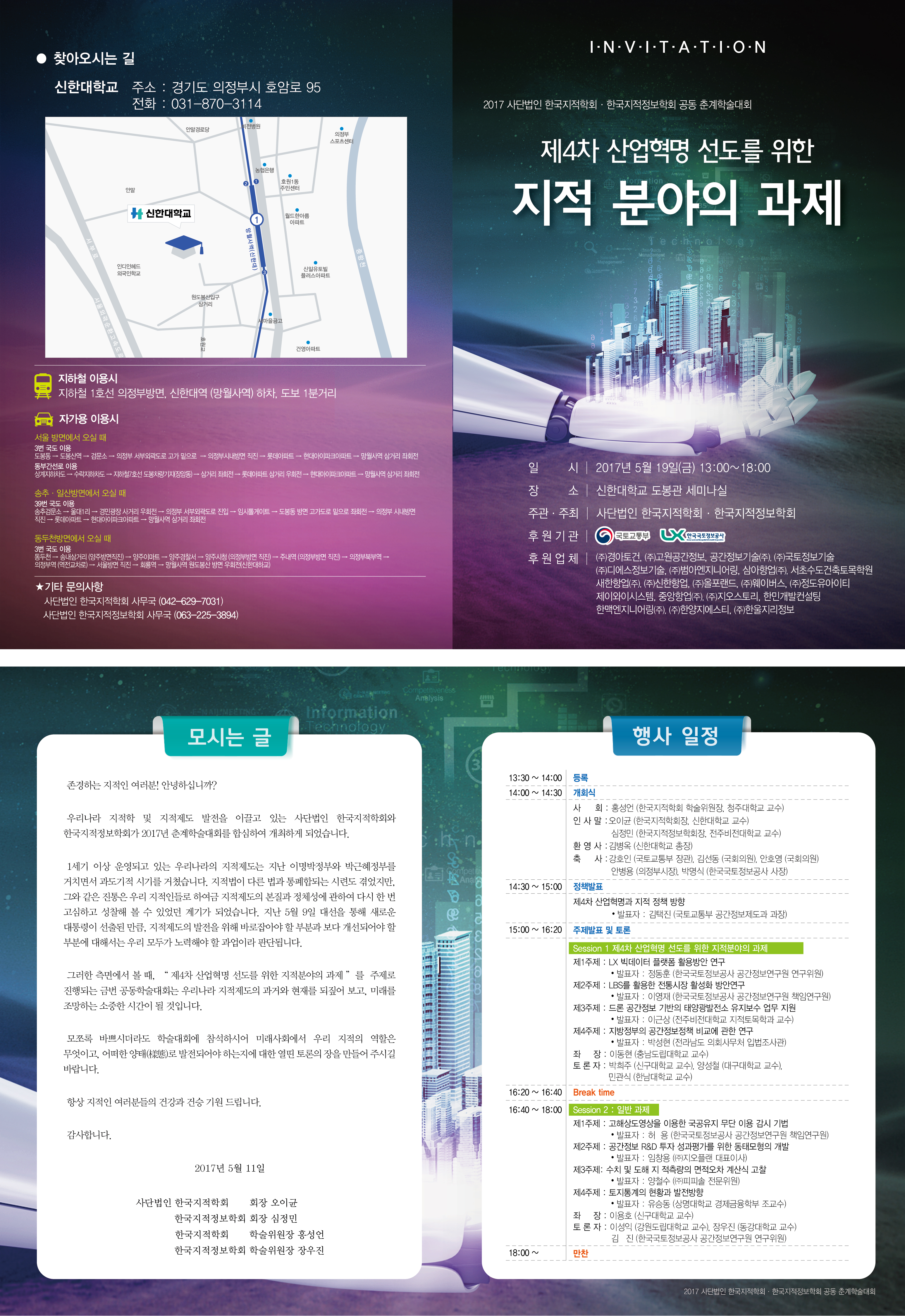 2017 (사)한국지적정보학회와 한국지적학회 공동 춘계학술대회에 회원 여러분의 많은 관심과 참여를 부탁드립니다.