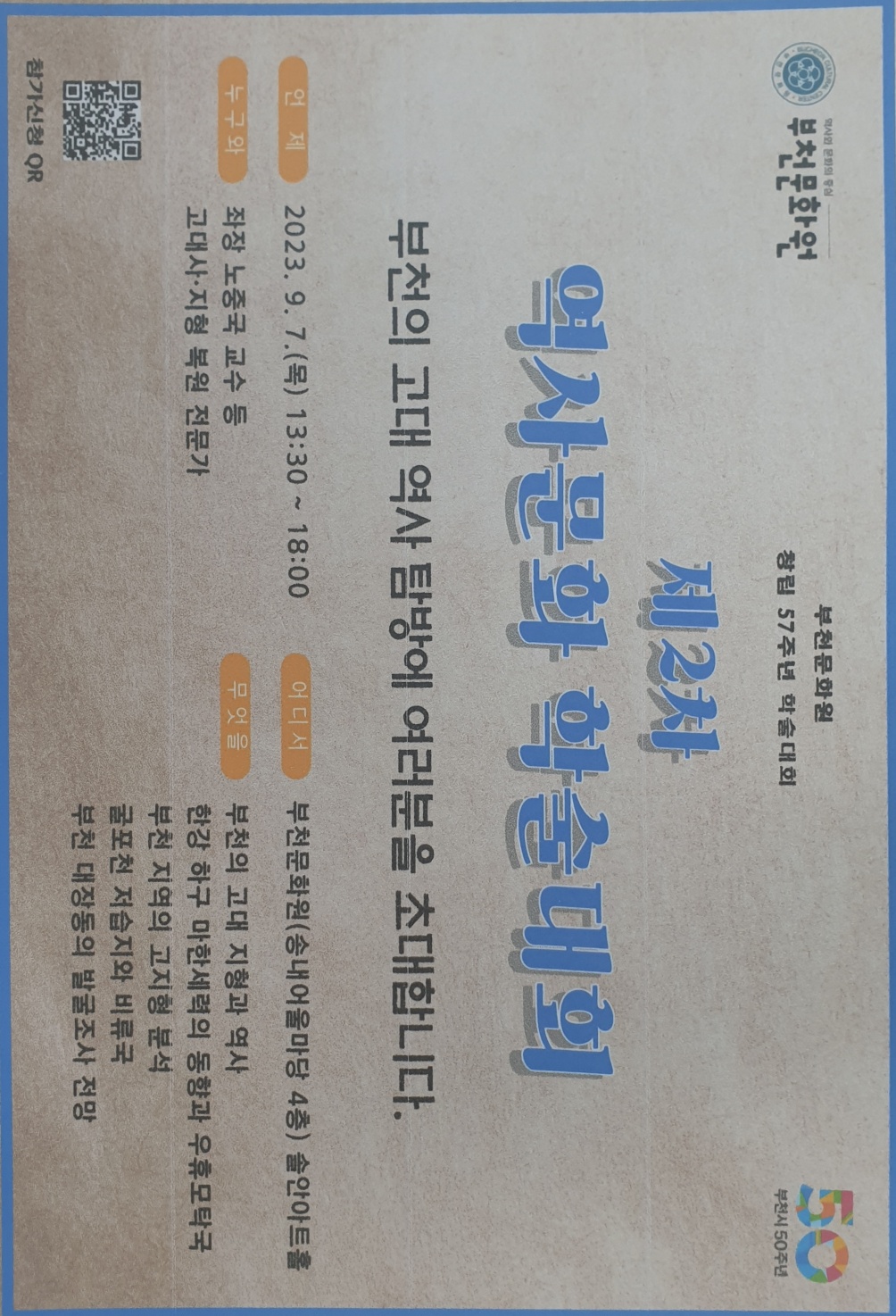 제목: 2023년 부천문화원 제2차 역사문화 학술대회