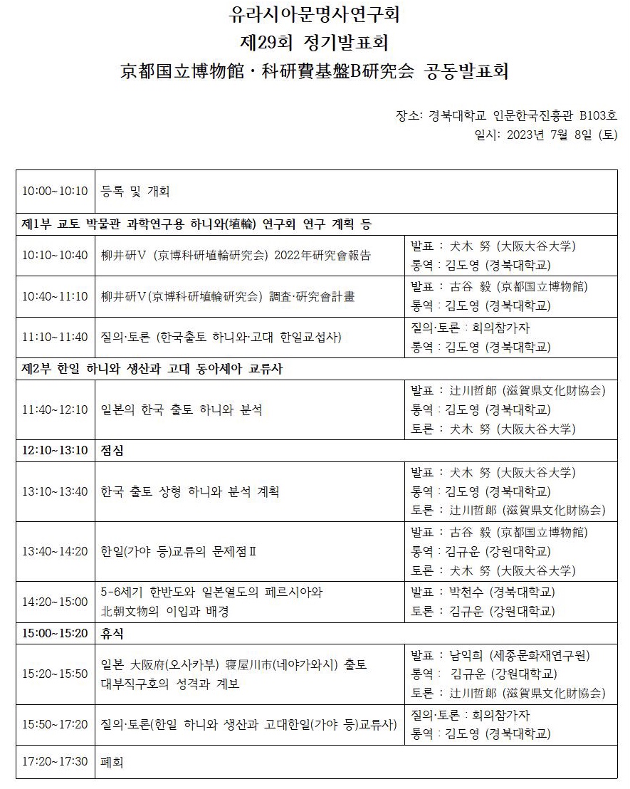 2023년 7월 8일 토요일, 유라시아문명사연구회 제29회 정기발표회가 진행될 예정입니다.