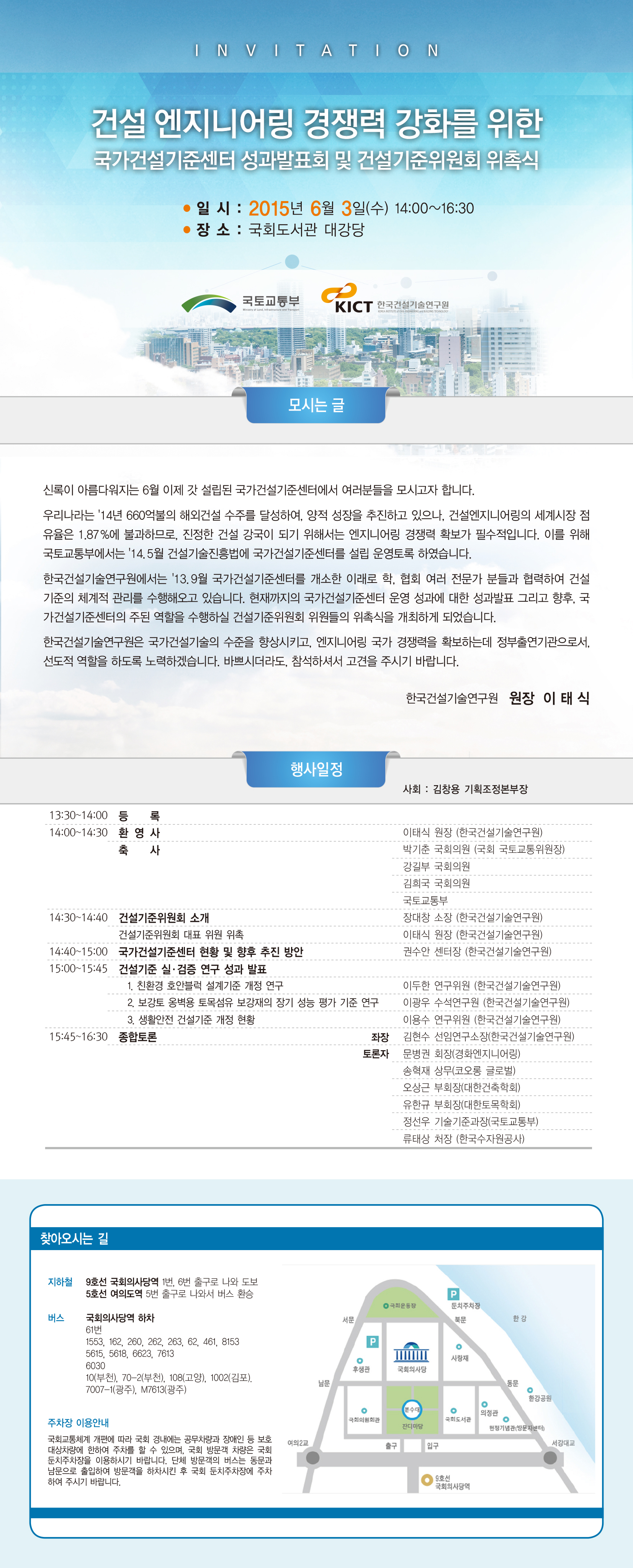 한국건설기술연구원 국가건설기준센터 건설기준위원회 위촉식 및 성과발표회를 아래와 같이 개최하오니, 회원분들의 많은 참석 바랍니다.
