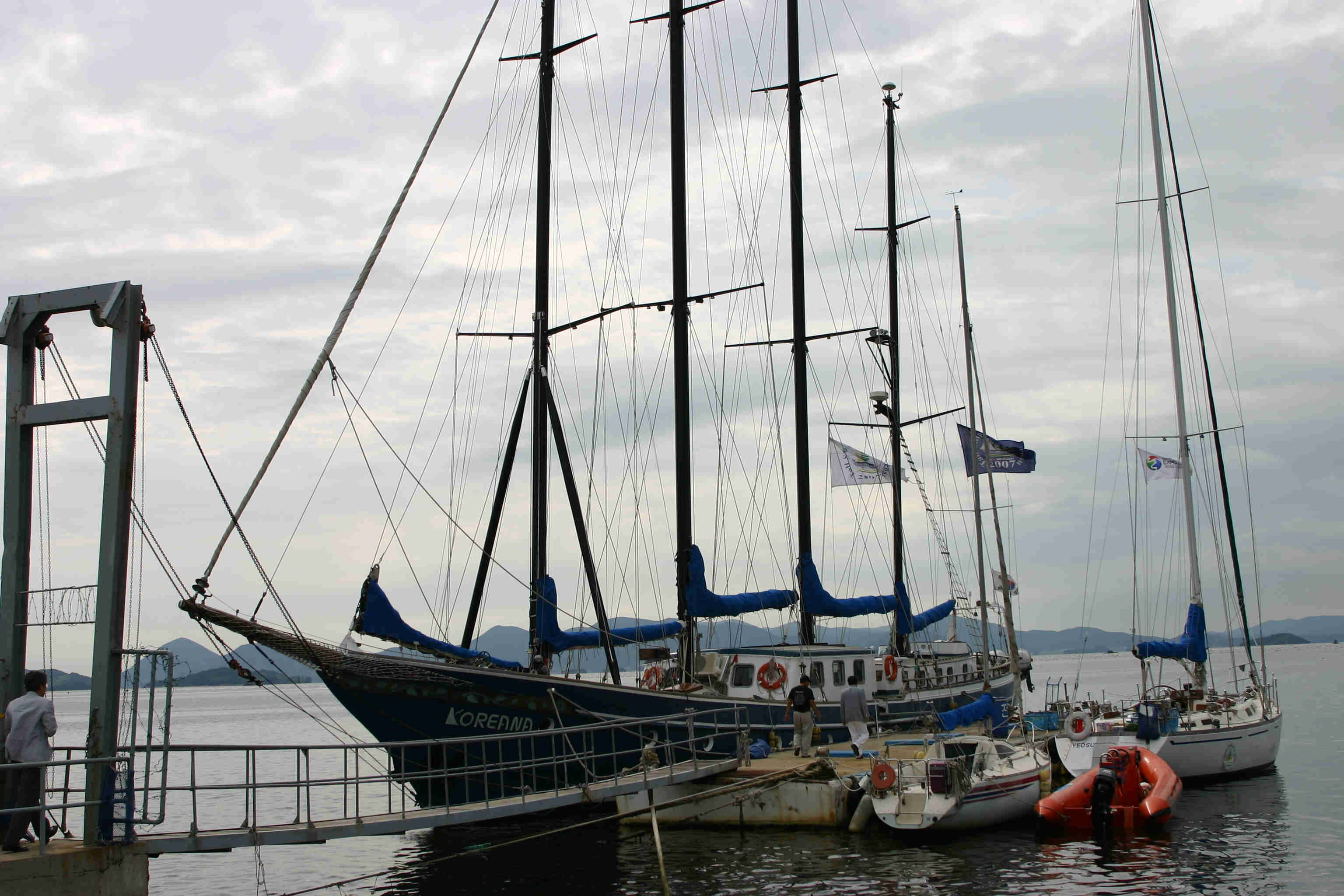 좌측이 우리가 둘러보고 차와 함께 선물도 받은 여수요트협회장의 범선이고 우측의 크루져가 탑승한 것입니다.