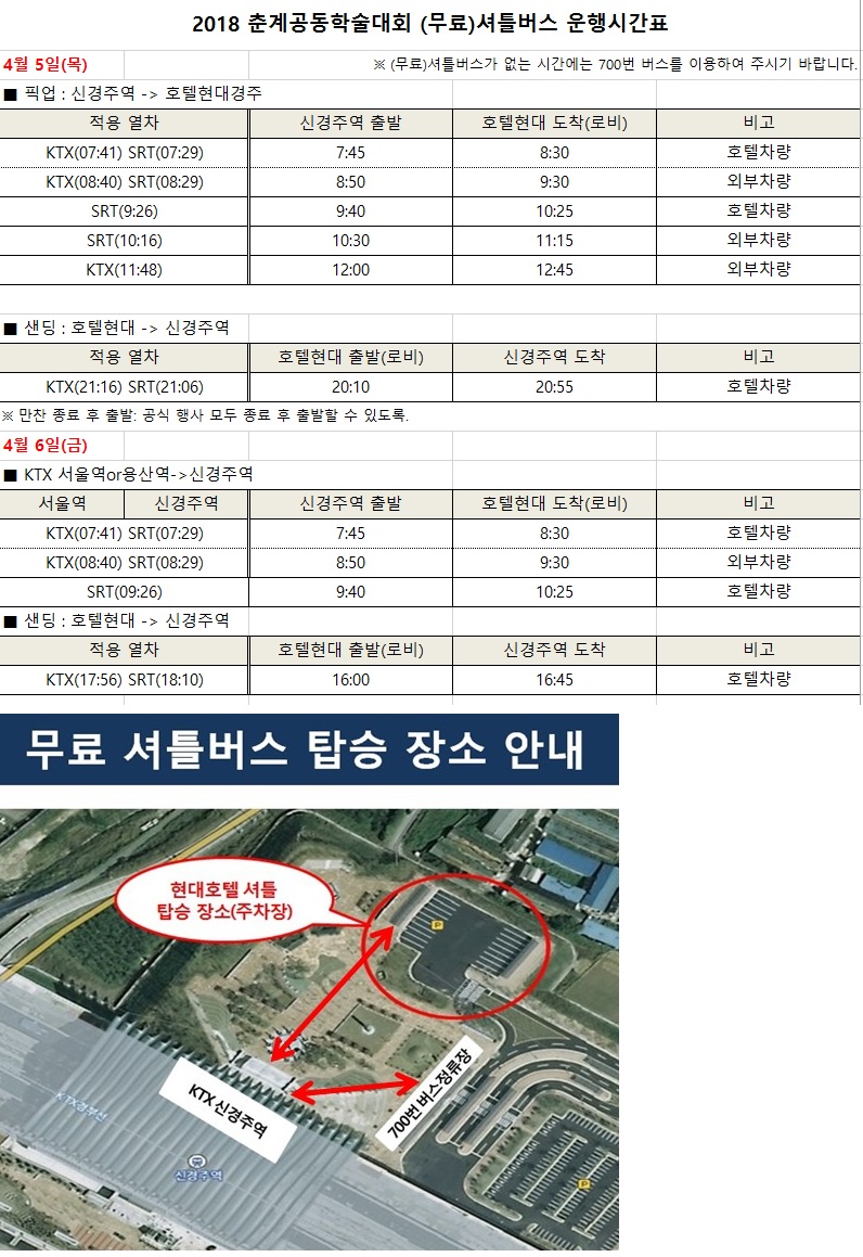 춘계공동학술대회 무료셔틀버스 안내(신경주역-현대호텔)