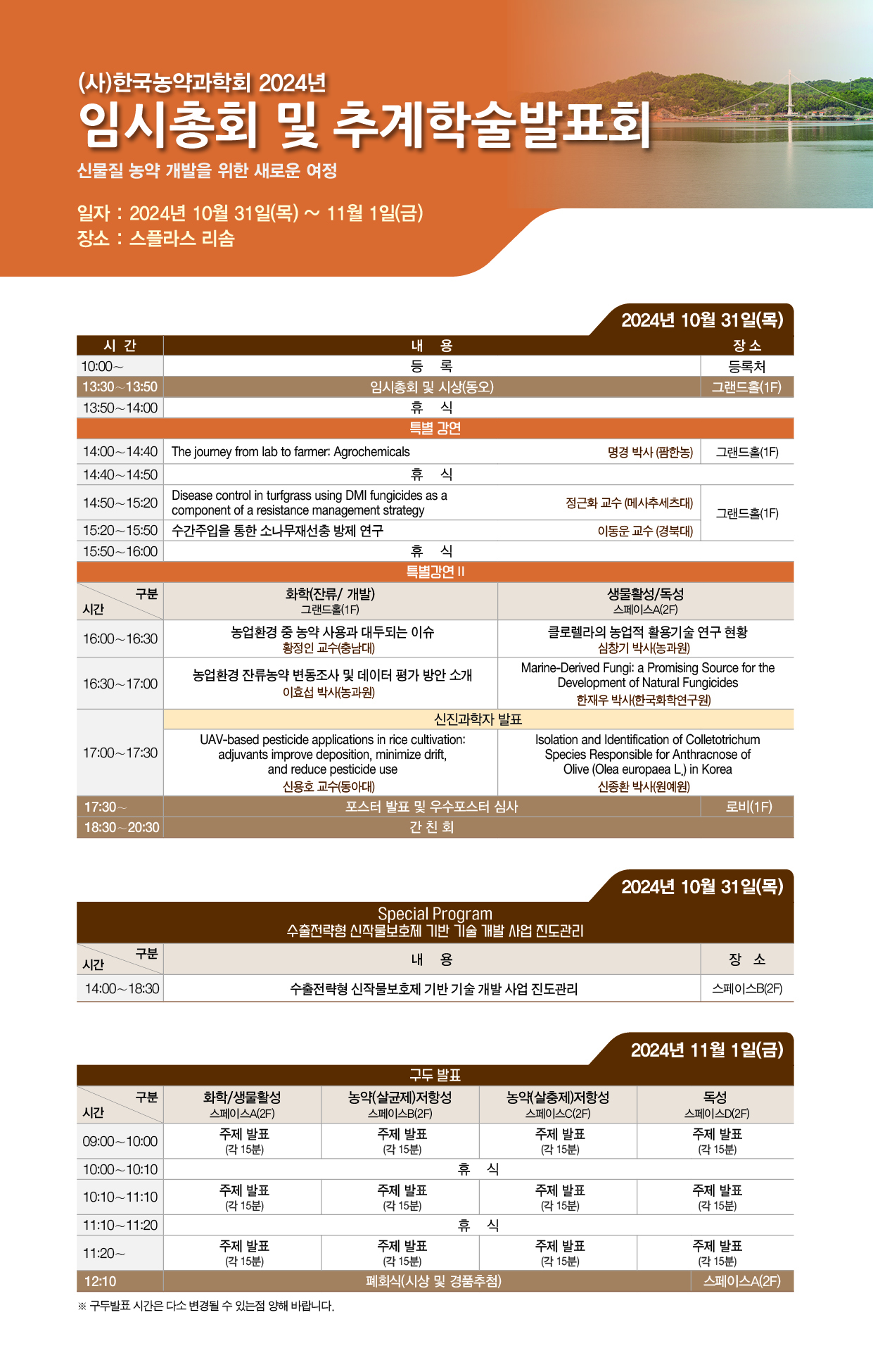 2024년 임시총회 및 추계학술발표회 일정 안내