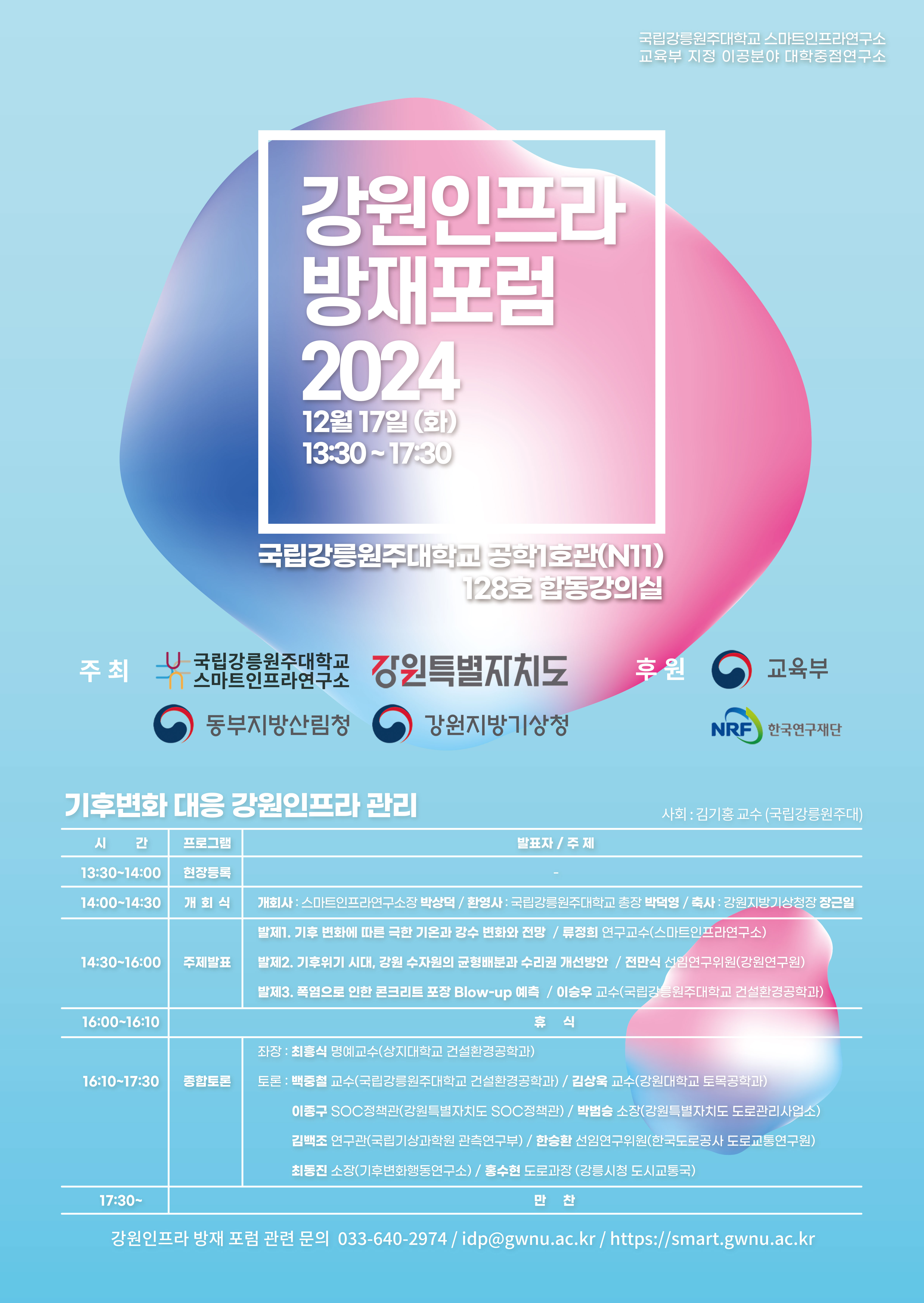 [국립강릉원주대학교 스마트인프라연구소] 2024 강원 인프라 방재 포럼 개최 안내
