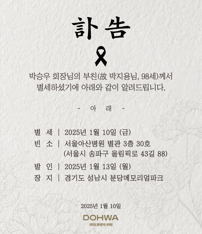 도화엔지니어링 박승우 회장의 부친(故박지용)께서 별세하셨기에
