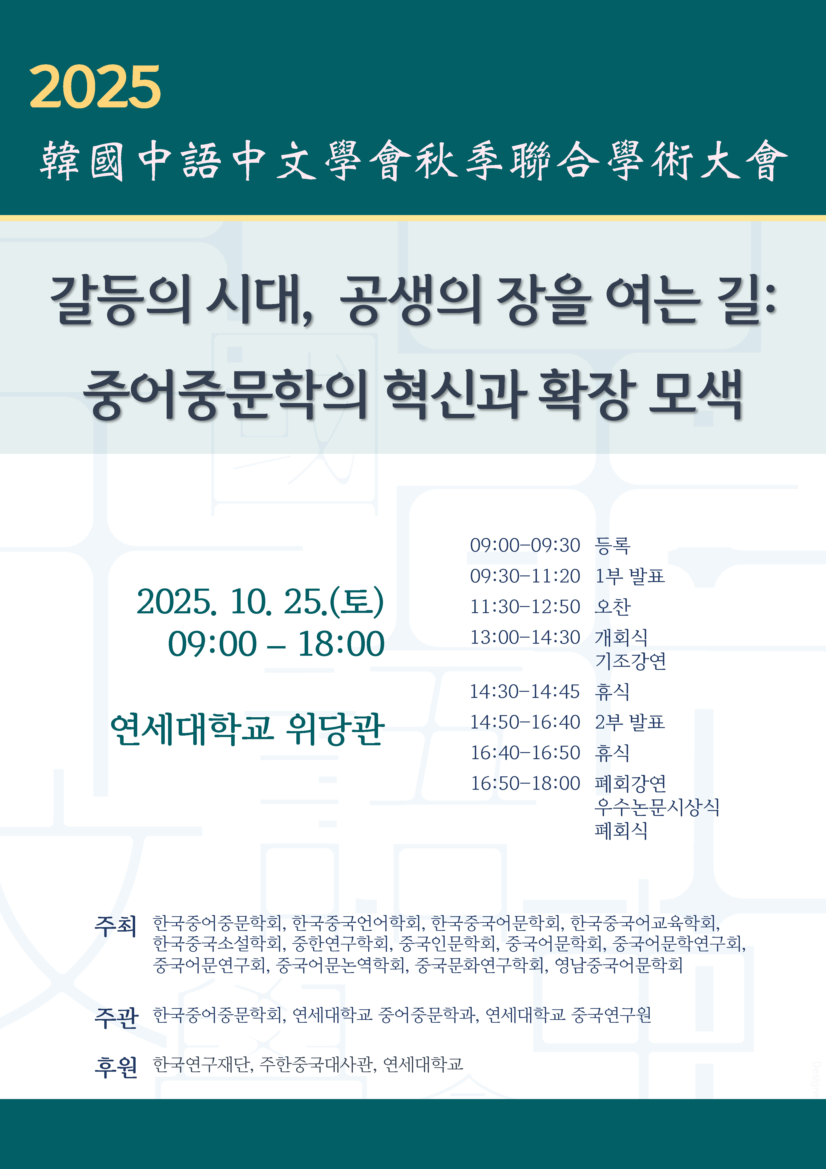 주관 한국중어중문학회연세대학교 중어중문학과연세대학교 중국연구원