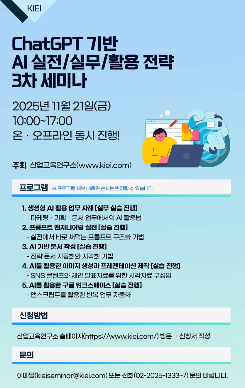 [산업교육연구소] ChatGPT 기반 AI 실전/실무/활용 전략 3차 세미나