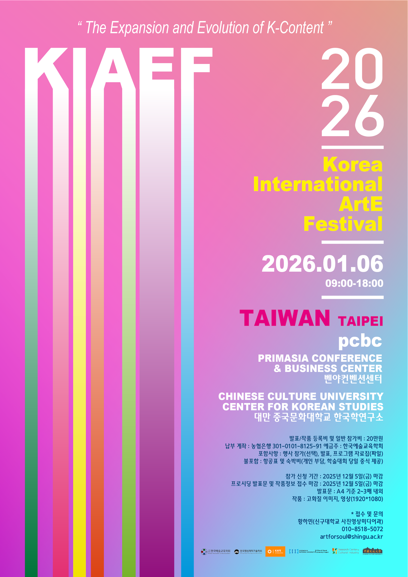 주최 : 한국예술교육학회, 한국영상제작기술학회, 한국영화교육학회, 국립경국대학교 문화산업연구소, 대만 중국문화대한국학연구소