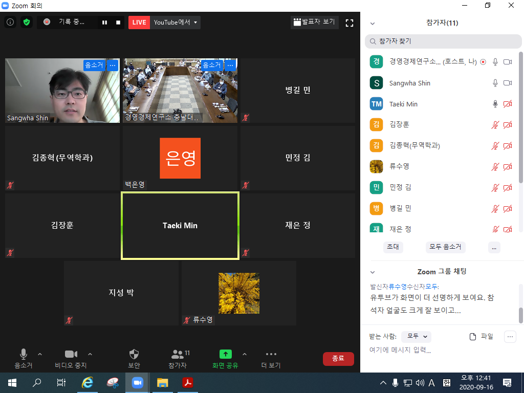 2020년 경영경제연구소 제2학기 제1차 수요세미나 (웨비나)