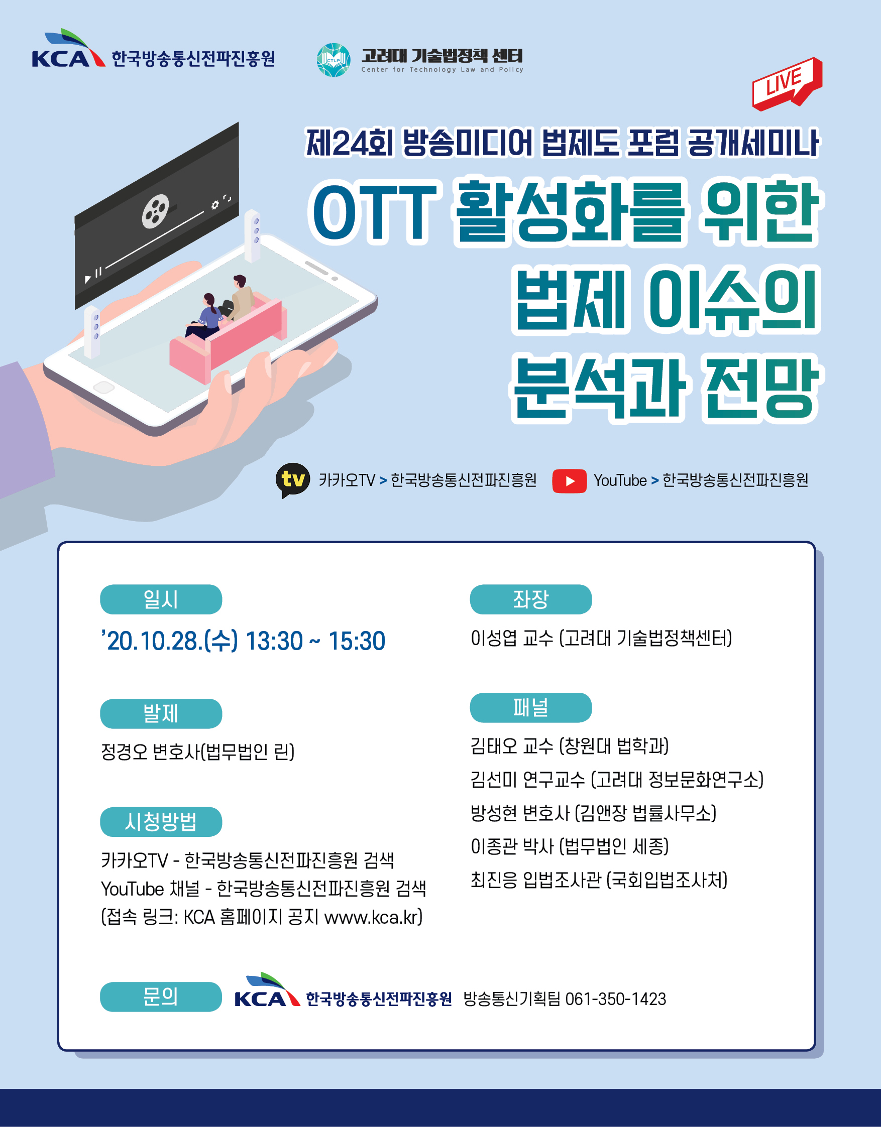 - 주제 : “OTT 활성화를 위한 법제 이슈의 분석과 전망”