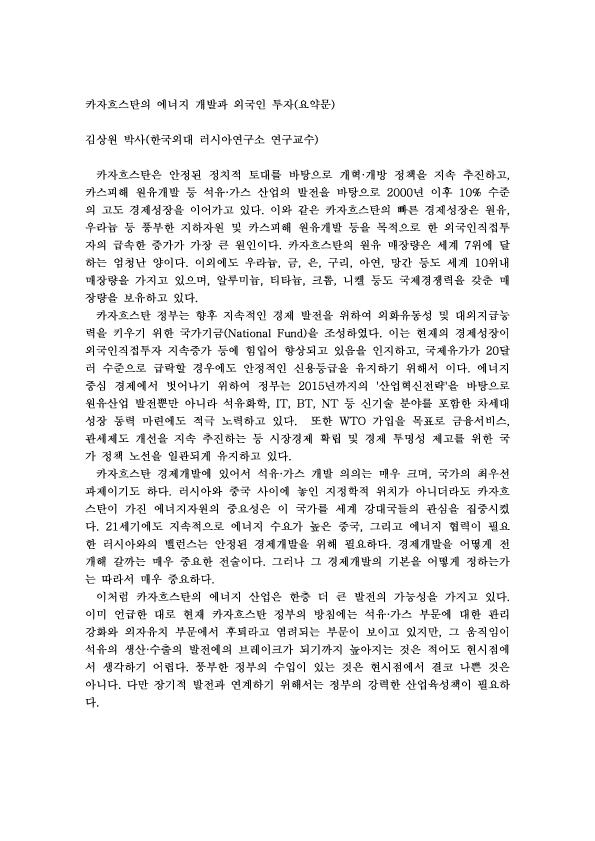 제74차 카자흐스탄의 에너지 개발과 외국인 투자 외 1