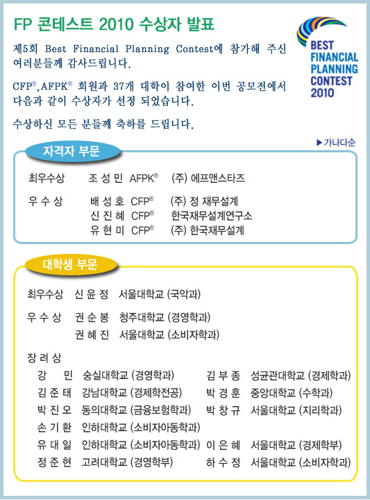 2010 Best FP Contest 시상식 및 한국FP협회 창립 10주년 기념세미나